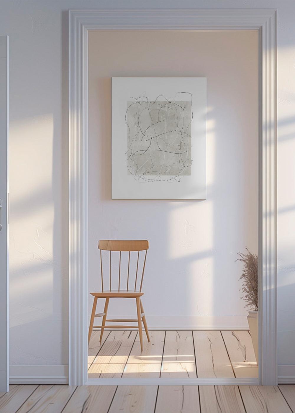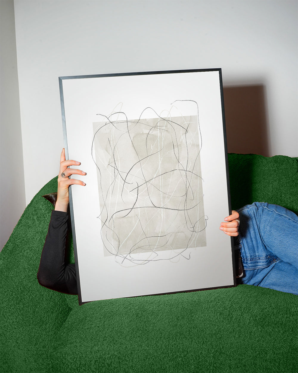 Un design ispirato alla collezione di quadri con linee, della collezione dell'artista Nouveau Prints, con sfumature dai toni grigio, e da appendere in posizione verticale. Si tratta di un'opera di arte astratta che darà un tocco moderno al design dei tuoi ambienti. Realizza un home decor ricco di arte.