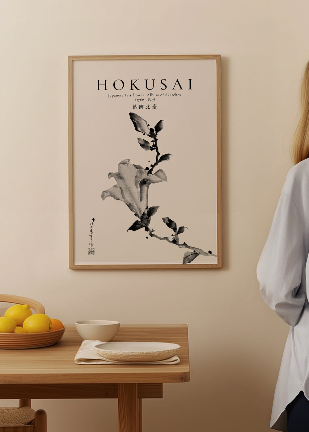 Quadro in bianco e nero Japanese Iris flower by Katsushika Hokusai