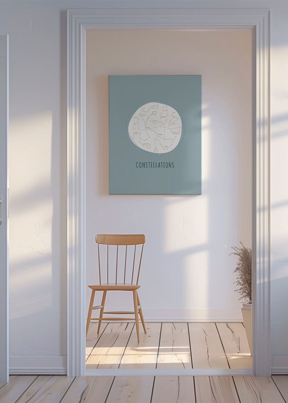 Questa pieza ispirato alla collezione di quadri sullo spazio, creata da Marta Munte, con sfumature dai toni blu, e orientata in senso verticale. Si tratta di un design perfetto per coloro che cercano un home decor in stile minimal, essenziale e curato. Non esistono pareti belle o brutte, esistono solo pareti spoglie o pareti con personalità.