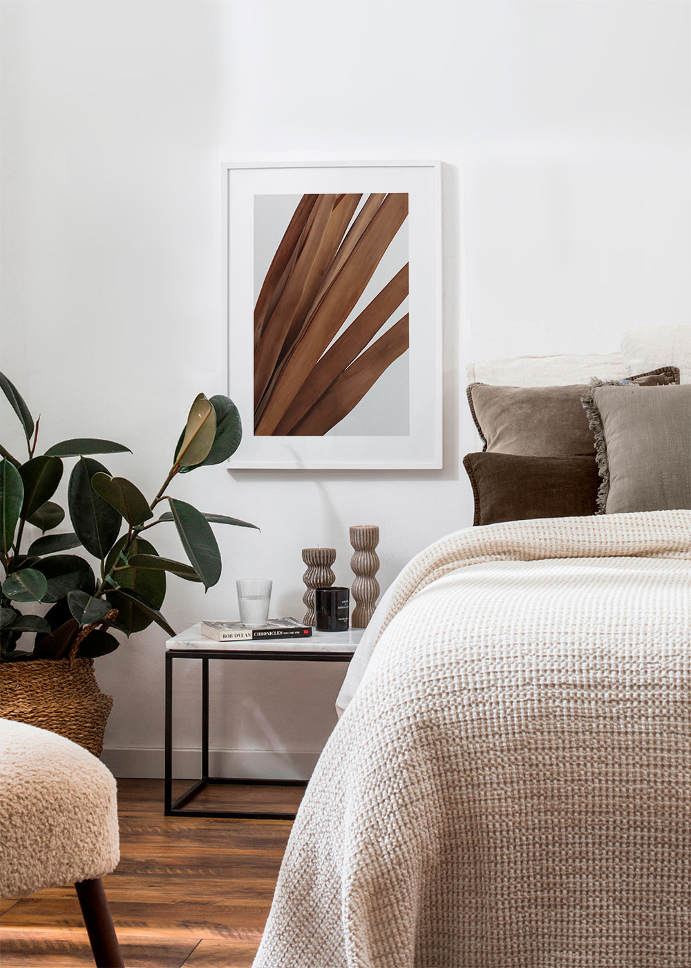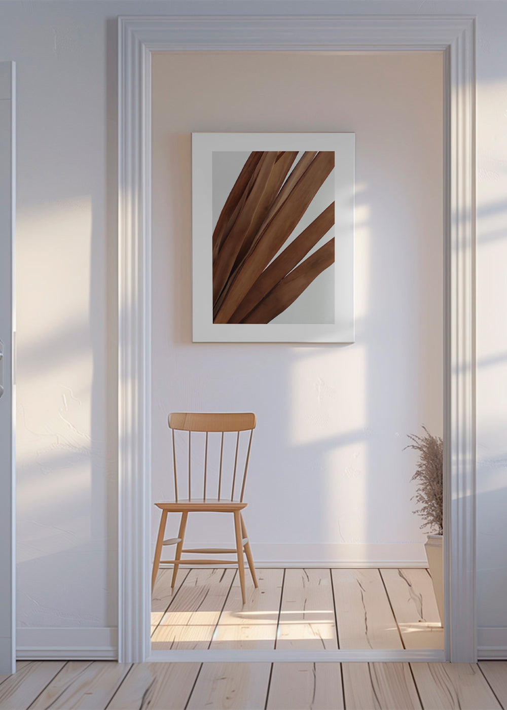 Questa stampa ispirato alla collezione di quadri di fiori e piante, con sfumature dai toni marroni, e con posizione verticale. L'home decor caratterizzato da quadri con motivi botanici è perfetto per chi ama la natura. Il tocco finale per il tuo home decor. Il margine bianco che incornicia l'immagine valorizza la forza espressiva dell'opera.
