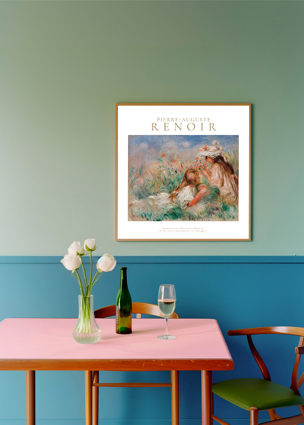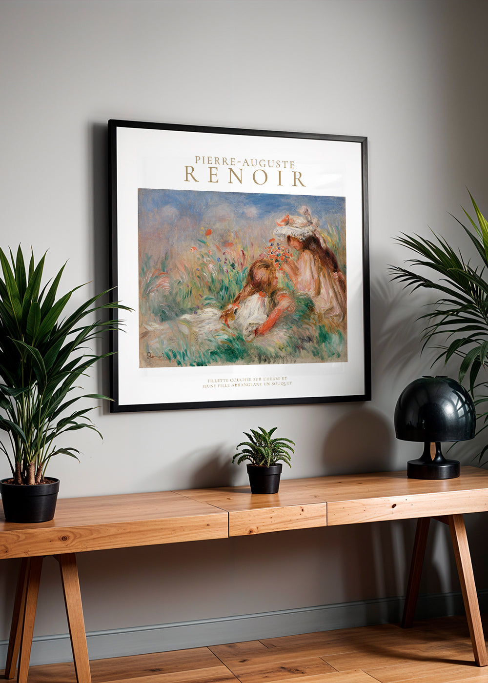 Quadro in stile nordico Girls in the Grass Arranging a Bouquet by Pierre-Auguste Renoir - Square