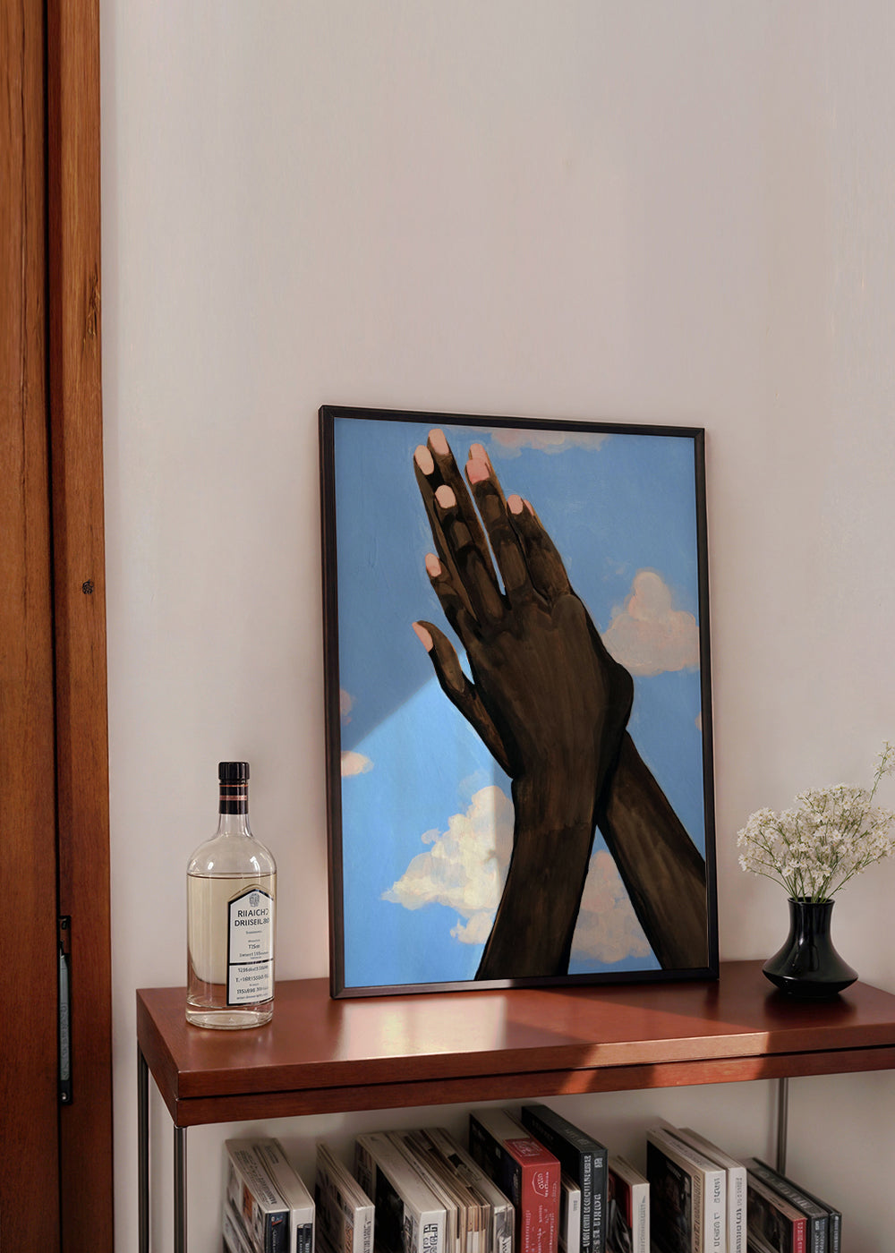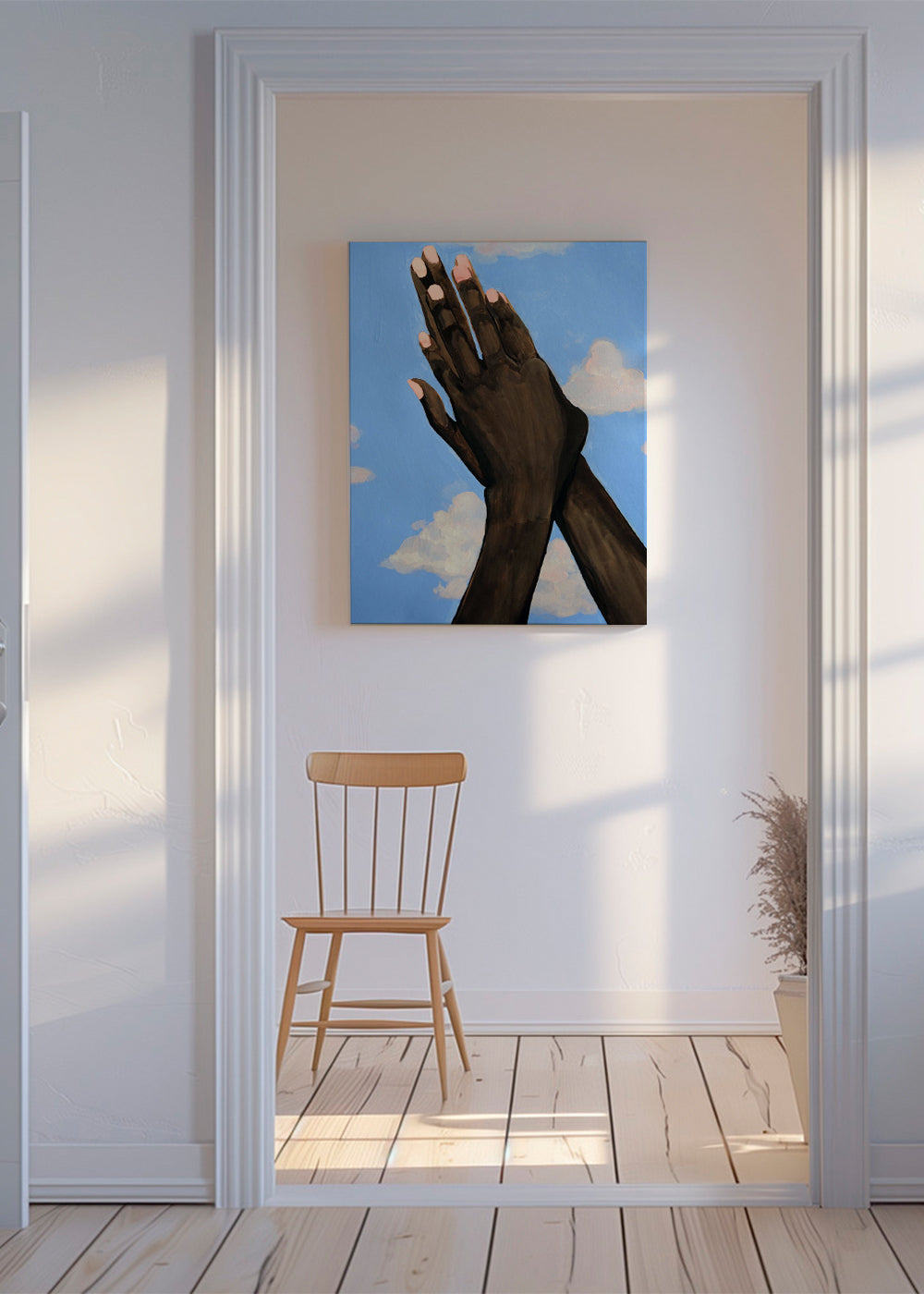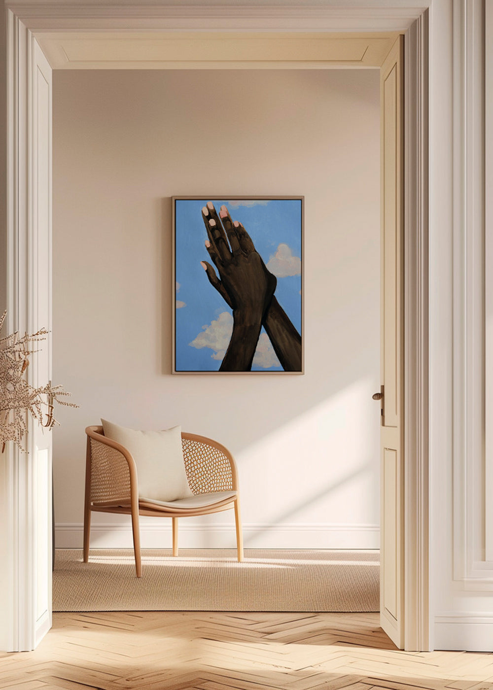 Un quadro della nostra categoria di quadri con mani, ideata da Sophia Novosel, sui toni blu, e con posizione verticale. I quadri con illustrazioni danno un tocco di originalità all'home decor della tua abitazione. Pareti eleganti per abitazioni chic.