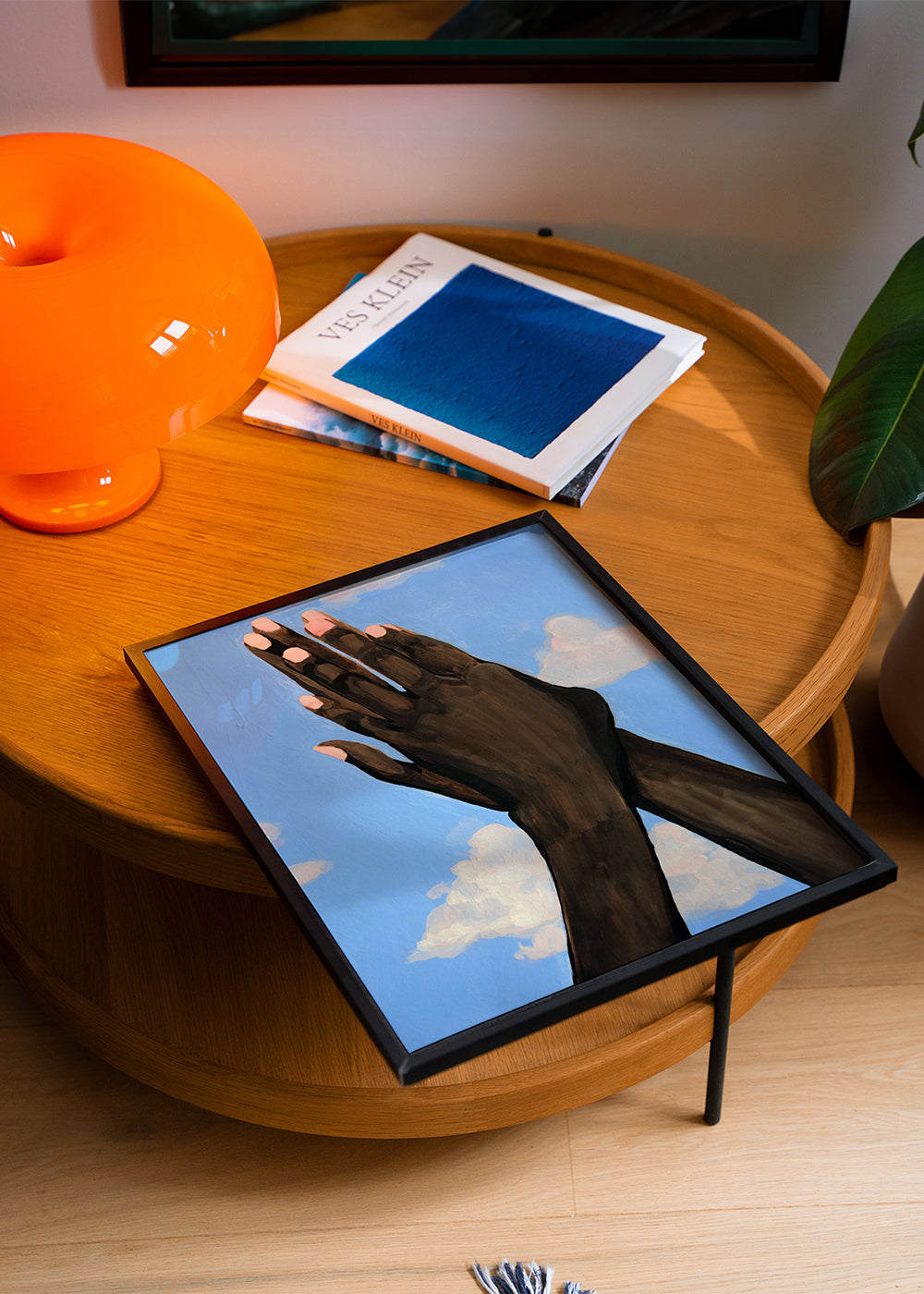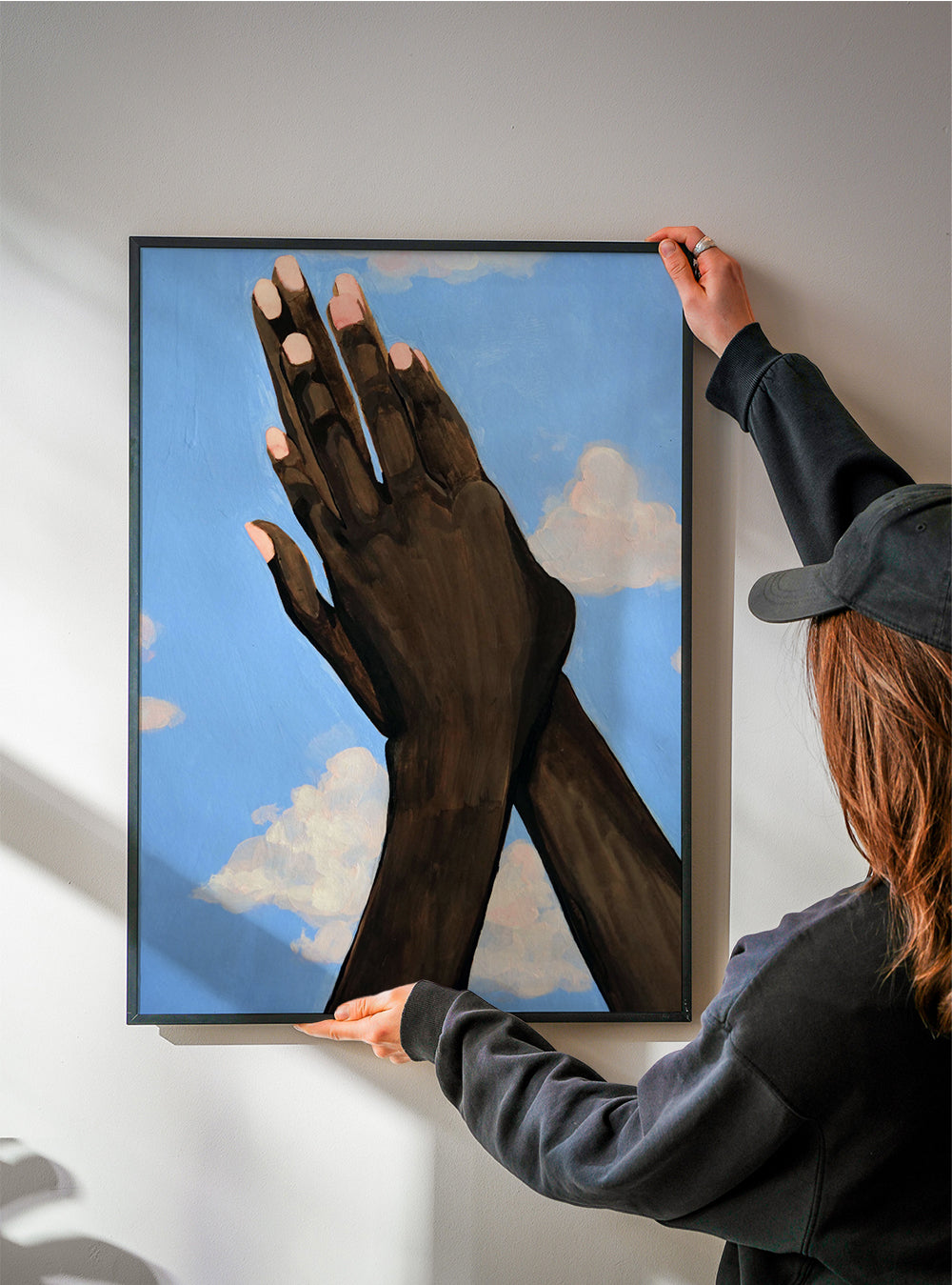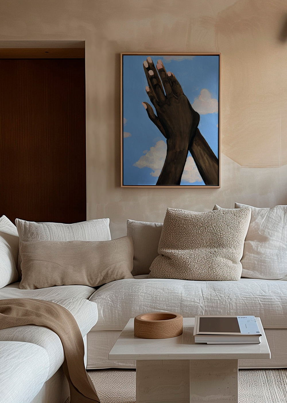 Un quadro della nostra categoria di quadri con mani, ideata da Sophia Novosel, sui toni blu, e con posizione verticale. I quadri con illustrazioni danno un tocco di originalità all'home decor della tua abitazione. Pareti eleganti per abitazioni chic.