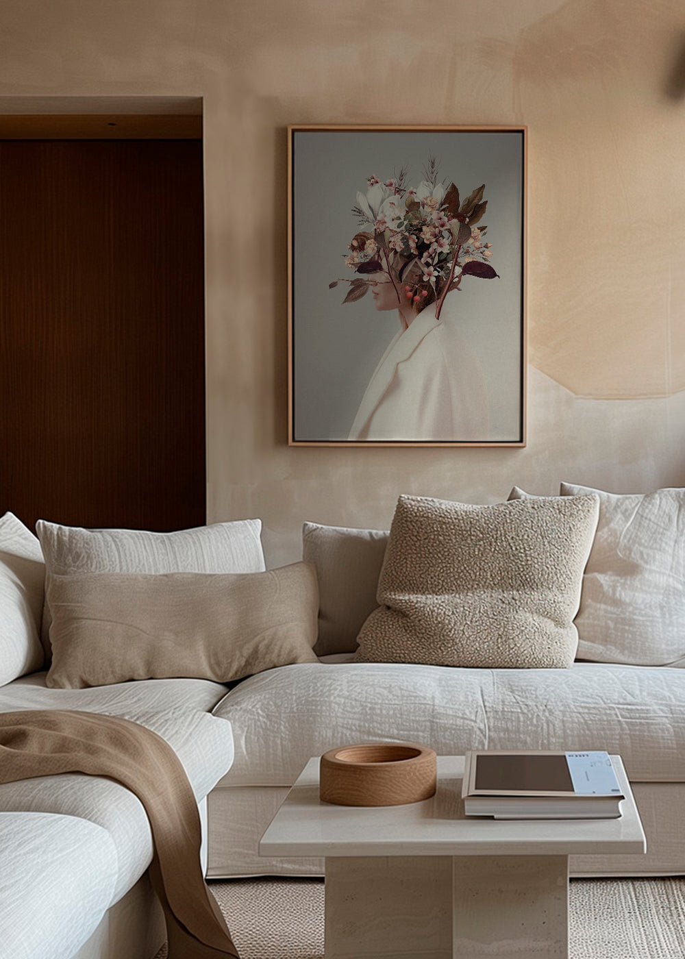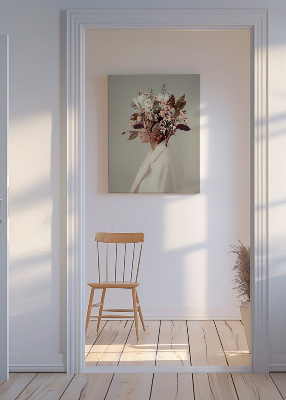 Un poster della nostra categoria di quadri di donne, dell'artista Frank Moth, con toni bianchi, e nel formato verticale. È un design perfetto per ambienti che intendono trasmettere calma e relax. Abbinala ad altri quadri rilassanti e crea uno stile di home decor ispirato alla mindfulness. Arte e design allo stato puro.