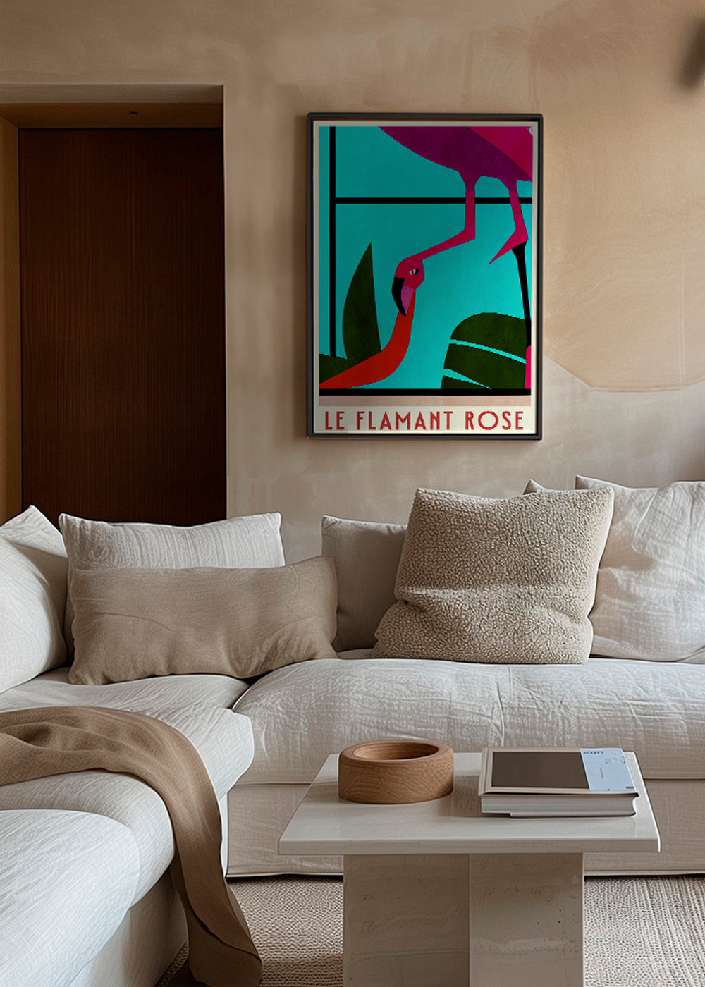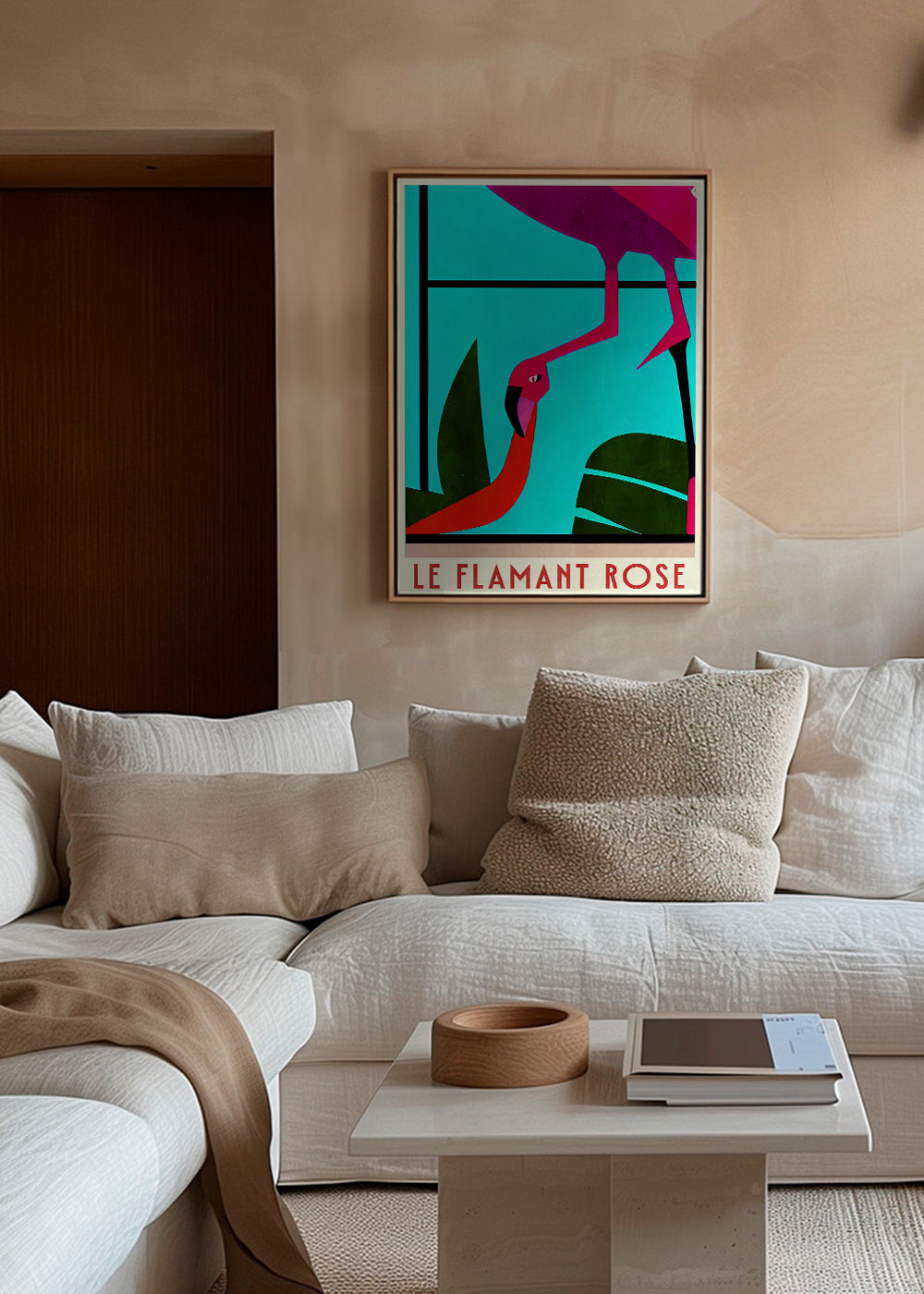 Questa opera ispirato alla collezione di quadri con fenicotteri, creata da Bo Anderson, sui toni blu, e nel formato verticale. Un poster retrò che puoi abbinare ad altri poster in stile vintage per dare un tocco di originalità alla tua abitazione. Dai personalità alle pareti della tua casa.