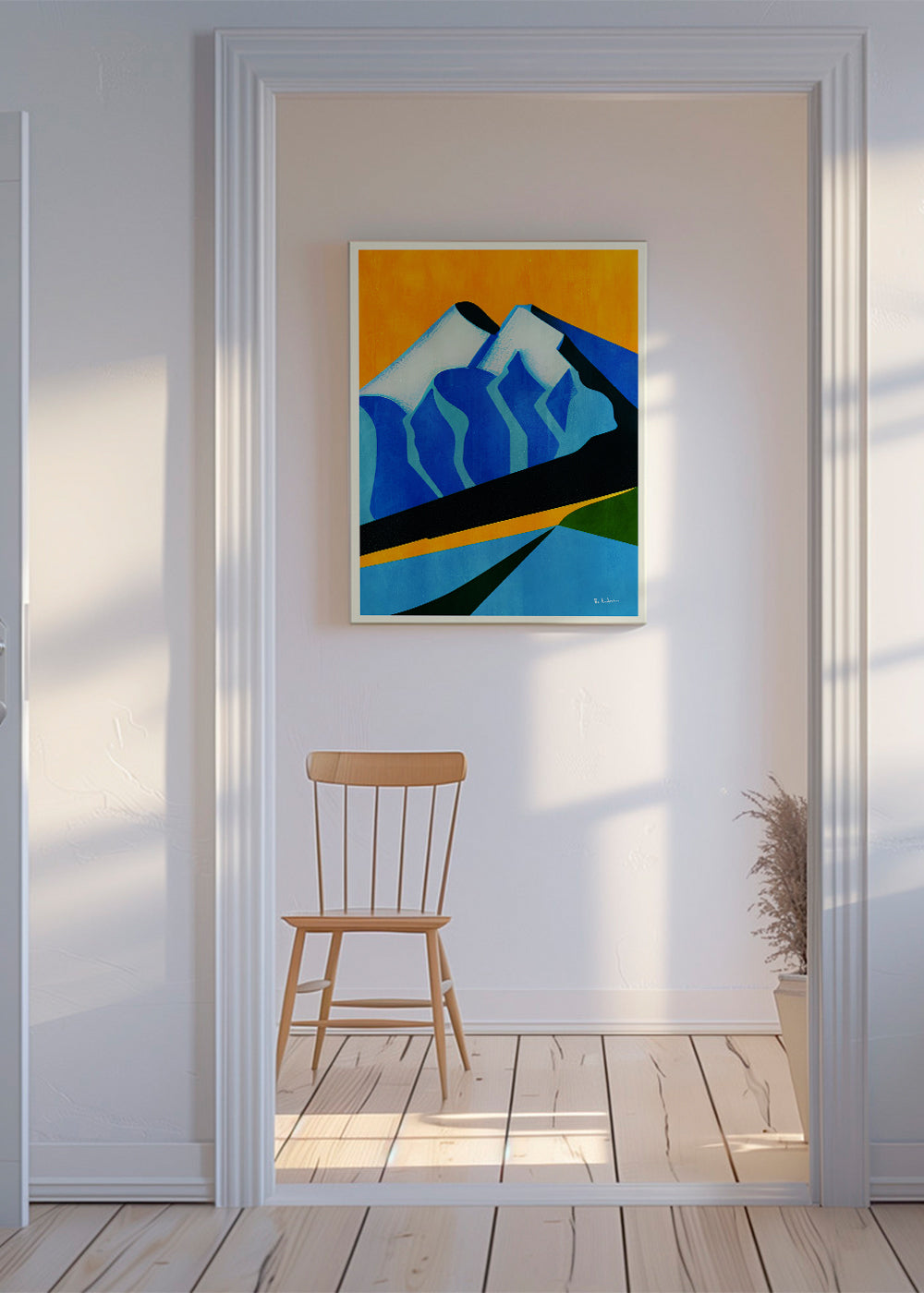 Questo quadro della nostra collezione di quadri vintage e stampe retrò , originale di Bo Anderson, con colori blu, e da mettere in posizione verticale. Un'opera dallo stile retrò ideale per un home decor dai tocchi vintage. Riempi le tue pareti di opere artistiche.