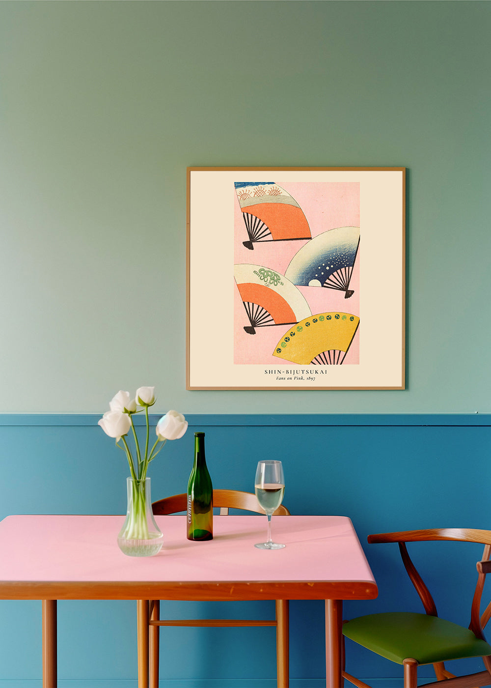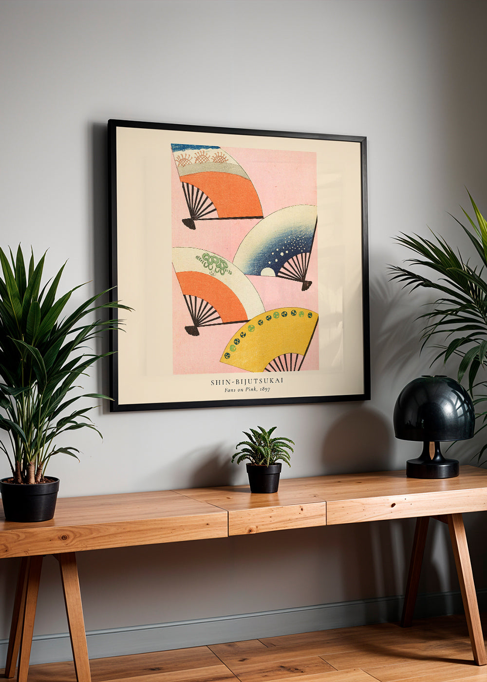 Quadro in stile nordico Shin-Bijutsukai - Fans on pink - Square