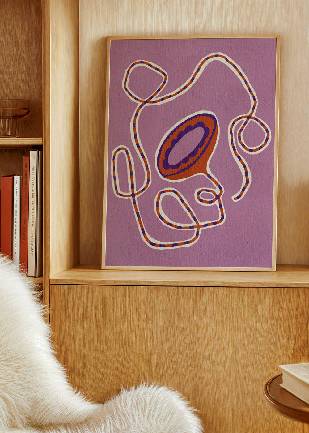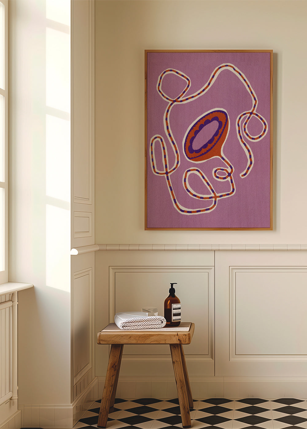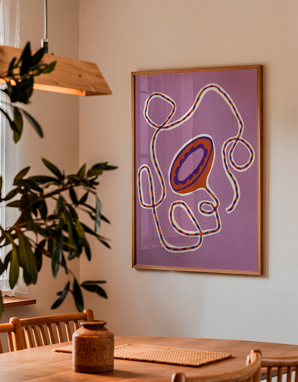 Arte che racconta. Disegno incantevole Progettato da Shatha Dafai. Ricco di accenti viola progettato nel formato verticali. Un'opera ideale per ambienti che trasudano arte e creatività le nostre illustrazioni sono perfette per decorare ambienti spogli o monotoni. Rinnova il tuo spazio senza sforzo