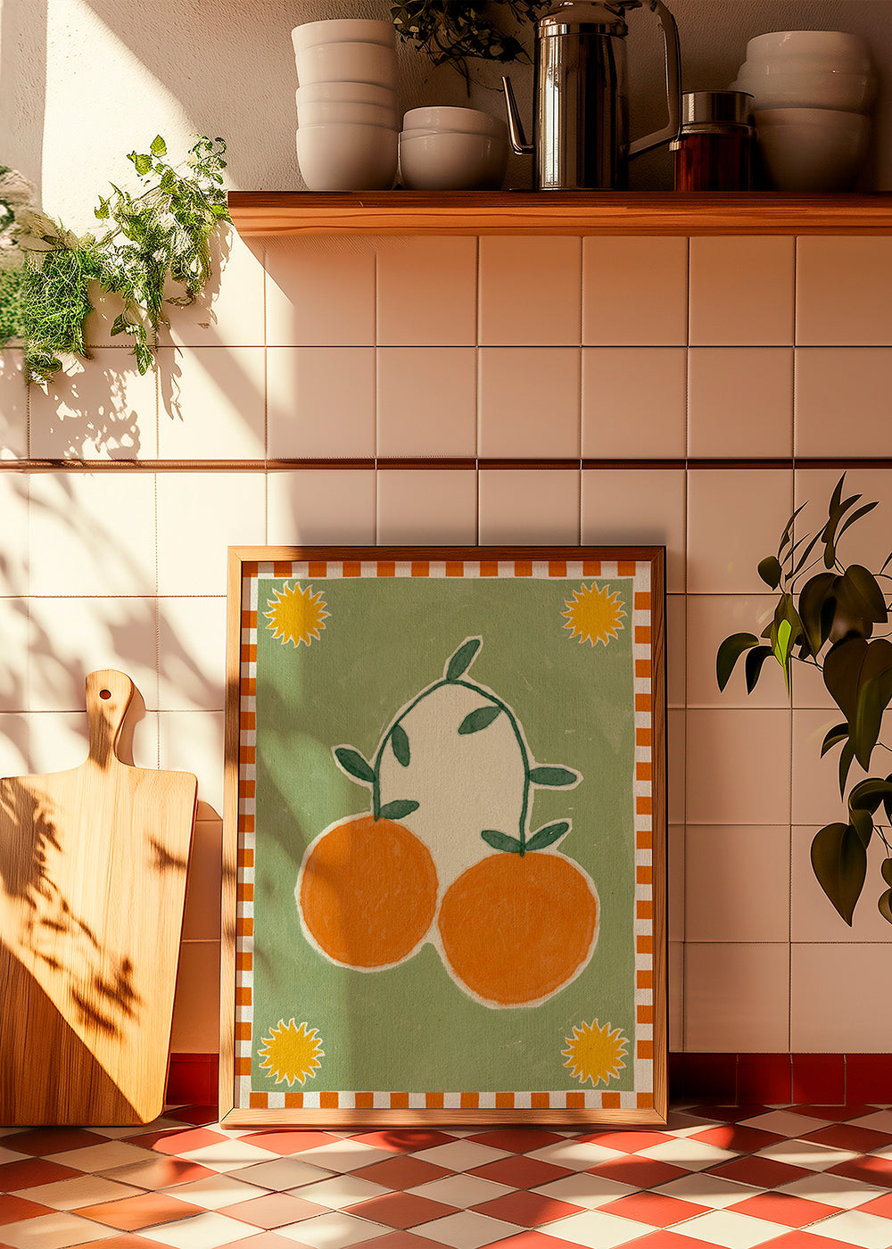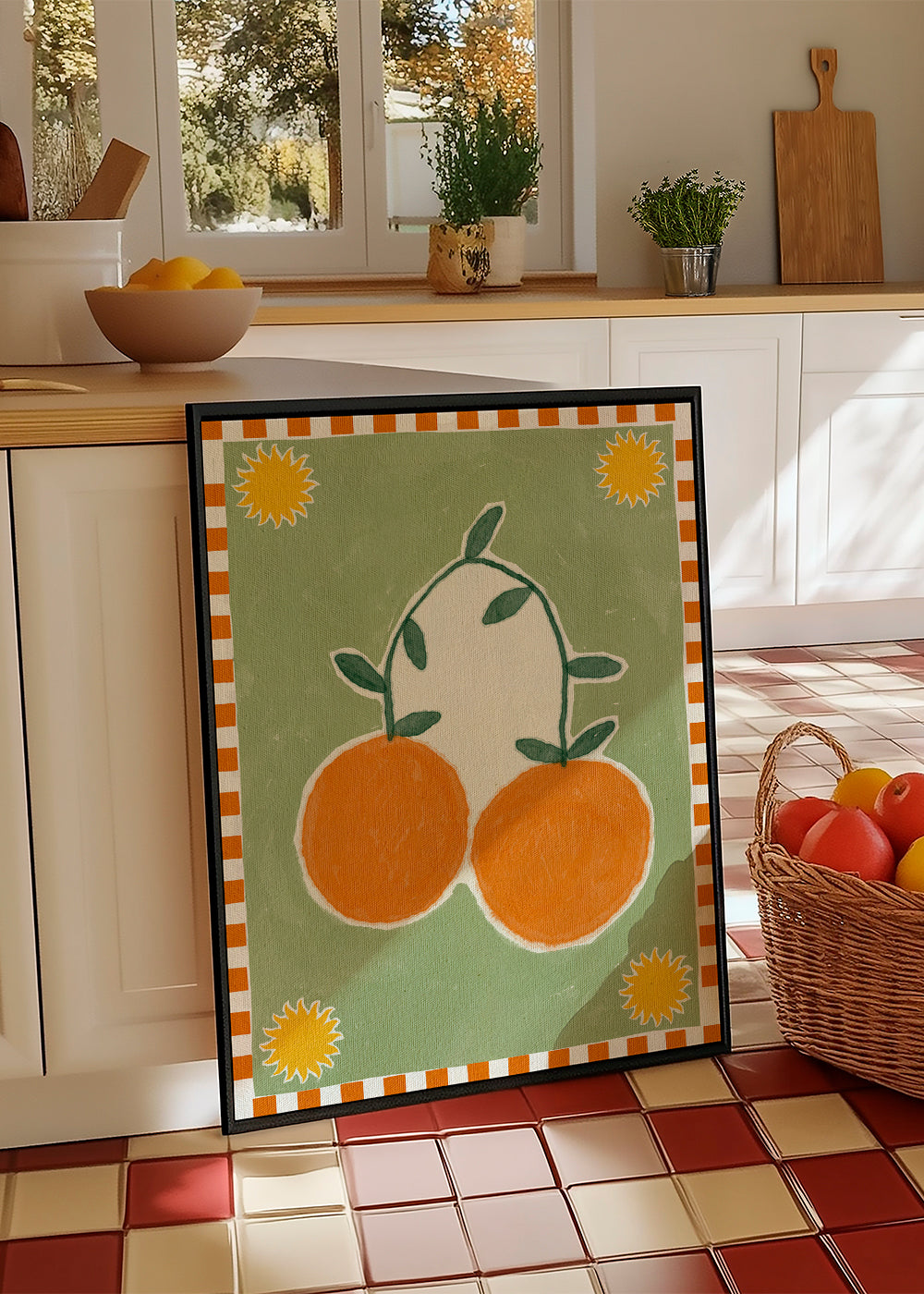 Arte che racconta. Disegno incantevole Progettato da Shatha Dafai. In splendidi toni arancioni con un design verticali. Le illustrazioni sono una delle forme d'arte più chiare, e questo è un design che non passerà inosservato. Dai vita alle tue pareti