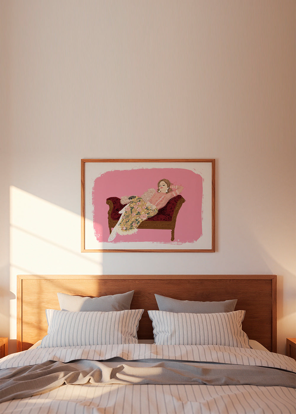 Tratto con anima. Disegno incantevole Un originale di Ludivine Josephine. Evidenziato con sfumature rosa con un design orizzontali. Le stampe con illustrazioni sono ideali per personalizzare le pareti in modo creativo. Rinnova il tuo spazio senza sforzo