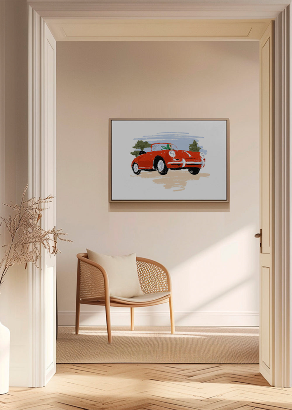 Personaggi con storia. Disegno incantevole Ispirato dalla creatività di Ludivine Josephine. Ricco di accenti rossi realizzato in orientamento orizzontali. Si tratta di un'illustrazione semplice e pulita, che puoi abbinare ad altre illustrazioni per realizzare una composizione artistica. Eleva la tua decorazione murale