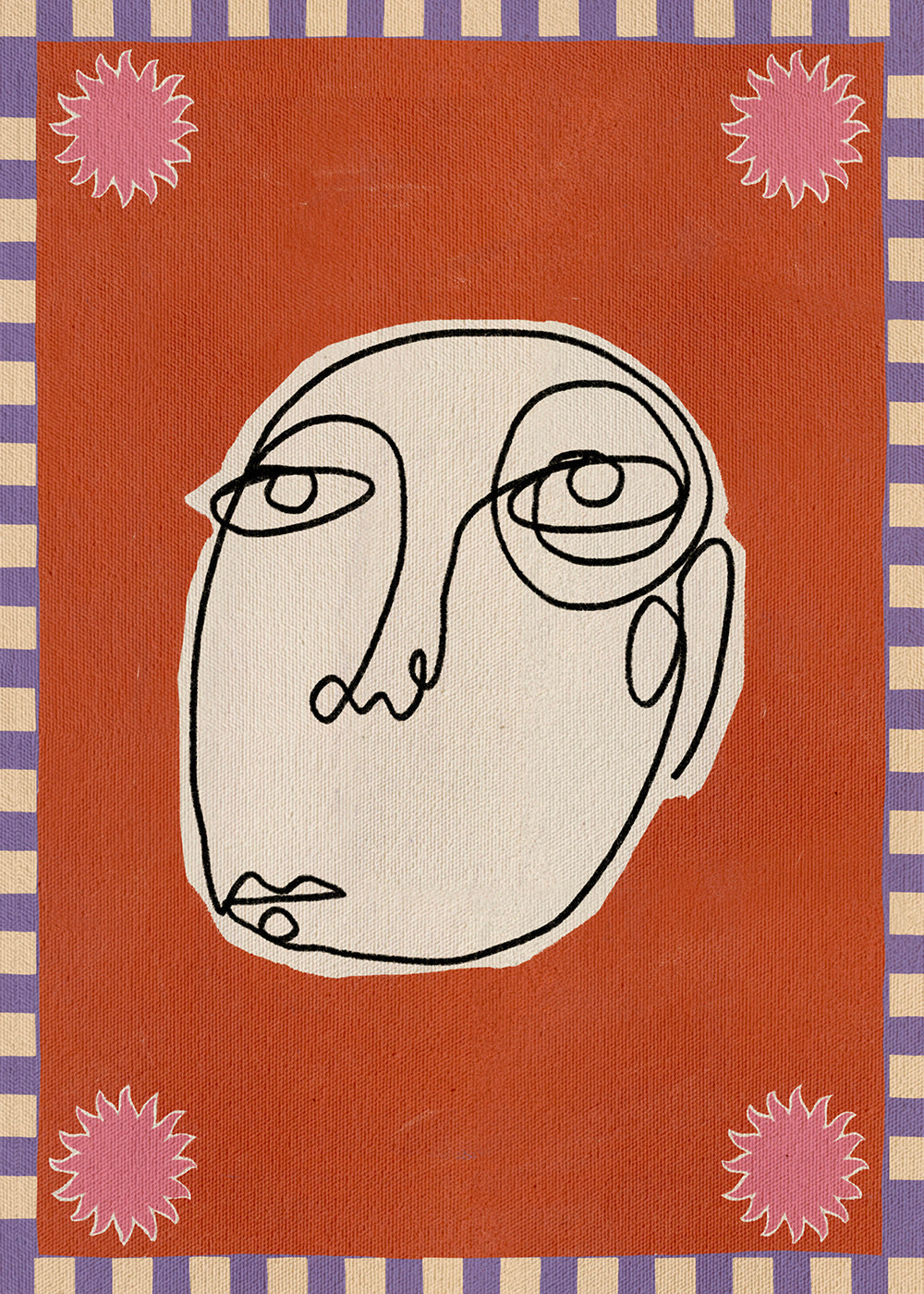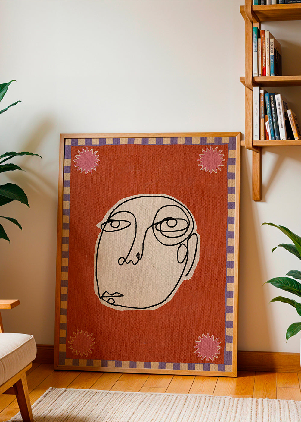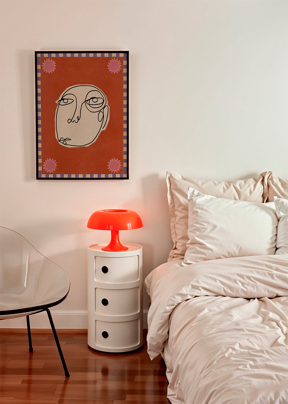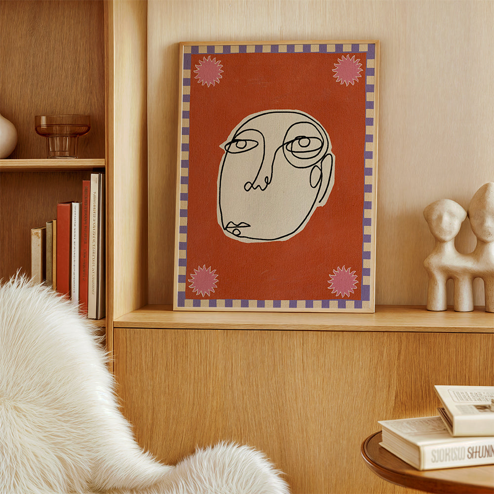 Arte che racconta. Disegno incantevole Creato dall’artista Shatha Dafai. Evidenziato con sfumature rossi stilizzato nel formato verticali. I quadri con illustrazioni danno un tocco di originalità all'home decor della tua abitazione. Aggiorna il tuo spazio con stile
