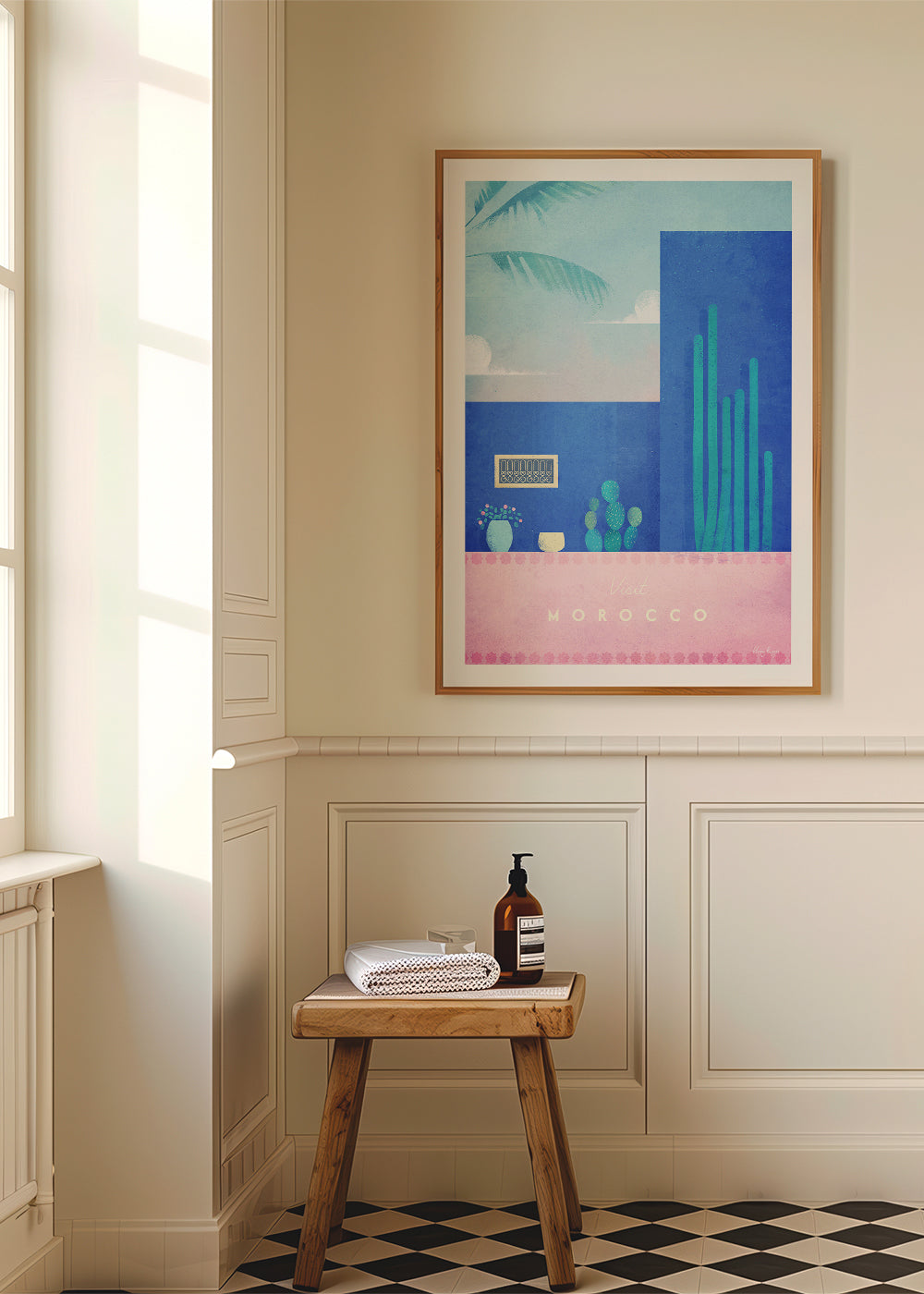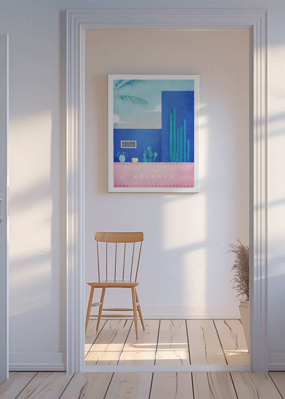 Una stampa della nostra selezione di quadri a tema viaggio, di Henry Rivers, sui toni blu, e da formato verticale. Combina skyline, fotografie e carte delle città per creare una composizione che si addice perfettamente a chi ama viaggiare. Lascia che l'arte riempia la tua casa.