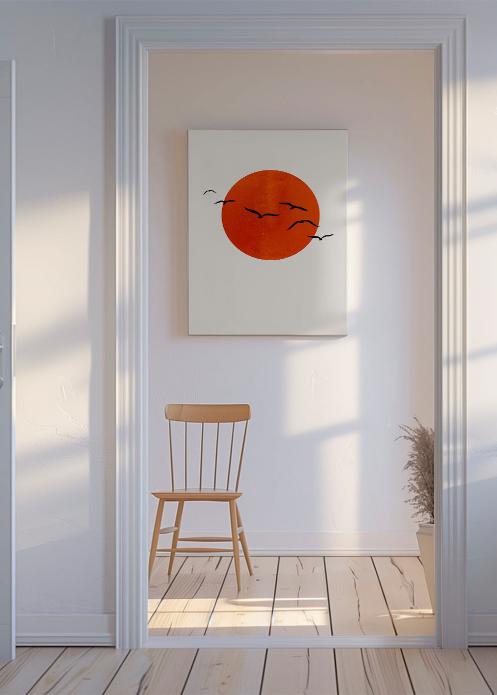 Questa opera dal nostro repertorio di quadri con uccelli, dell'artista Kubistika, con toni rossi, e orientata in senso verticale. Un bel paesaggio ideale da abbinare ad altri quadri sulla natura. Crea l'ambiente perfetto.