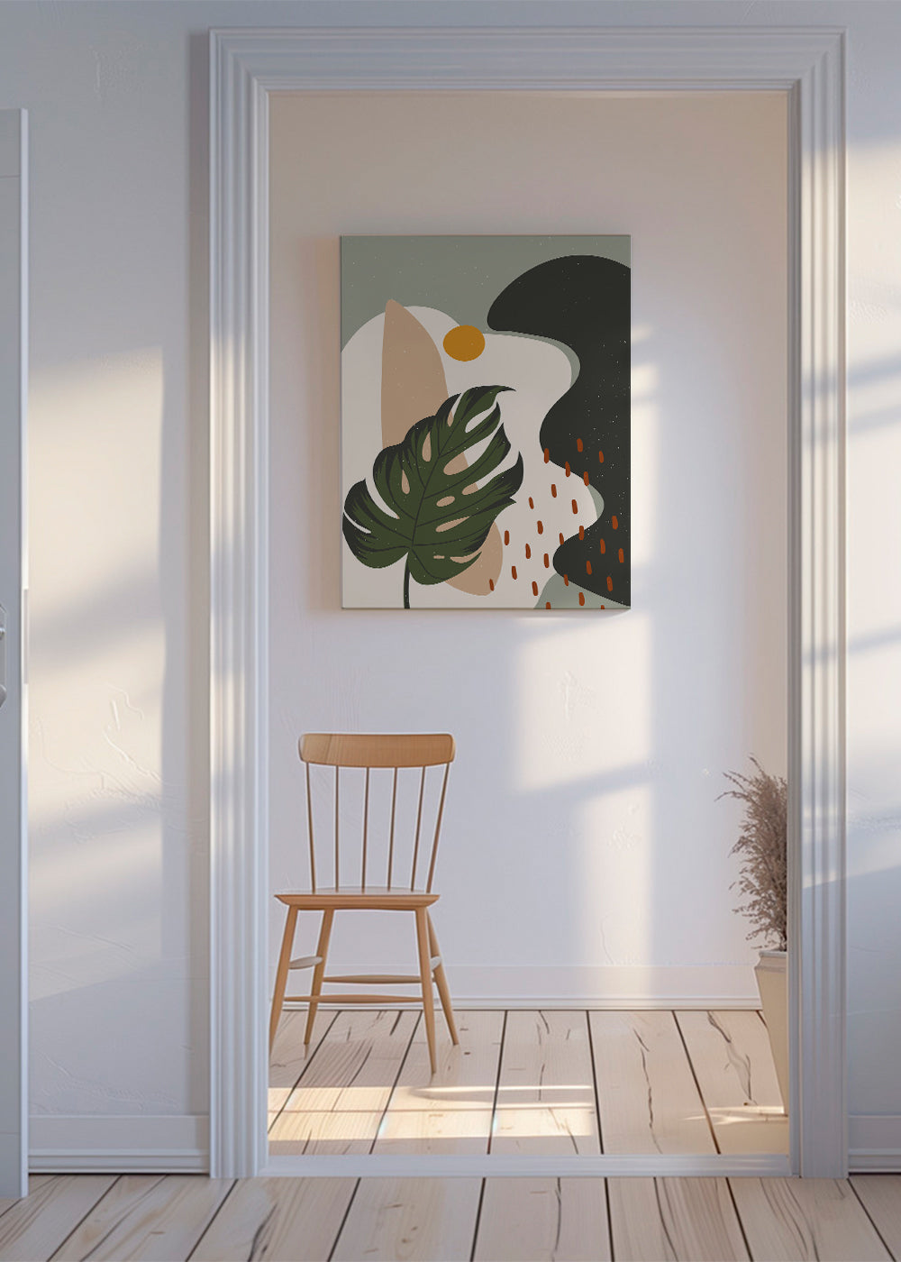 Un poster della collezione quadri con foglie, di Essentially Nomadic, sui toni verdi, e ideale da mettere in posizione verticale. Un'opera ideale per ambienti che trasudano arte e creatività. Le nostre illustrazioni sono perfette per decorare ambienti spogli o monotoni. Le pareti decorate con i quadri sono il non plus ultra.