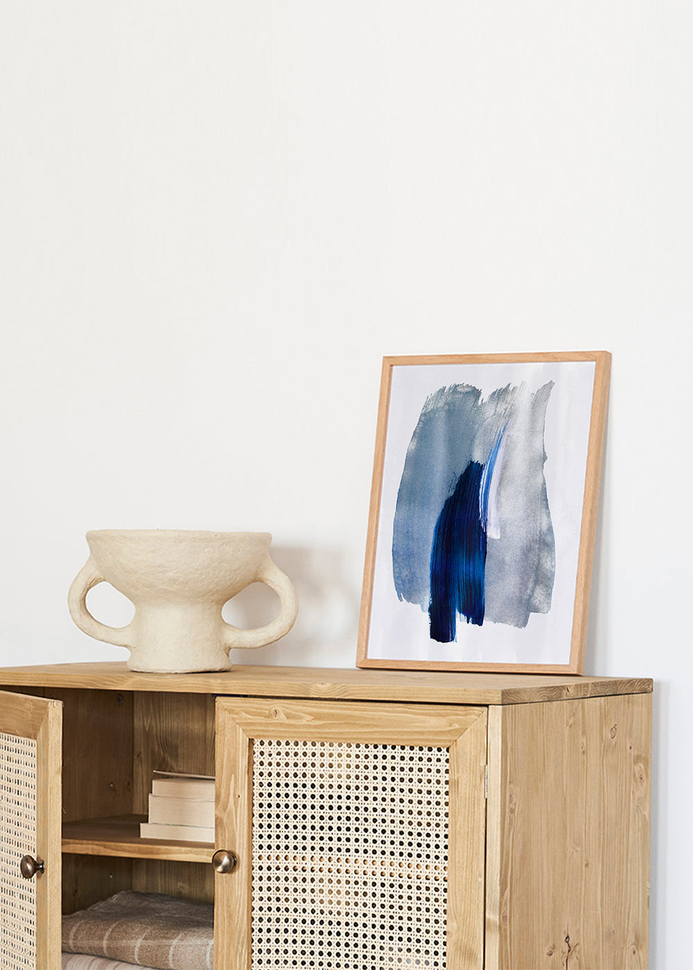 Questo poster della nostra selezione di quadri a pennello, di Mareike Bohmer, con colori blu, e da mettere in posizione verticale. L'arte astratta stimola la nostra mente e ci fa riflettere sul significato delle opere. Dai un tocco artistico al tuo home decor.