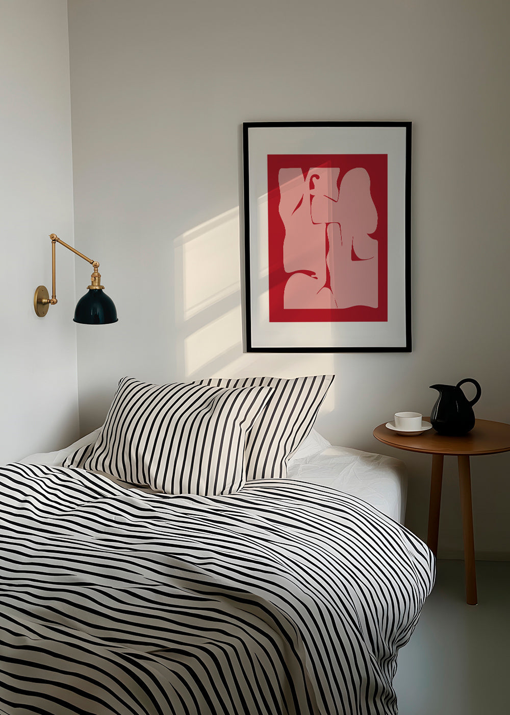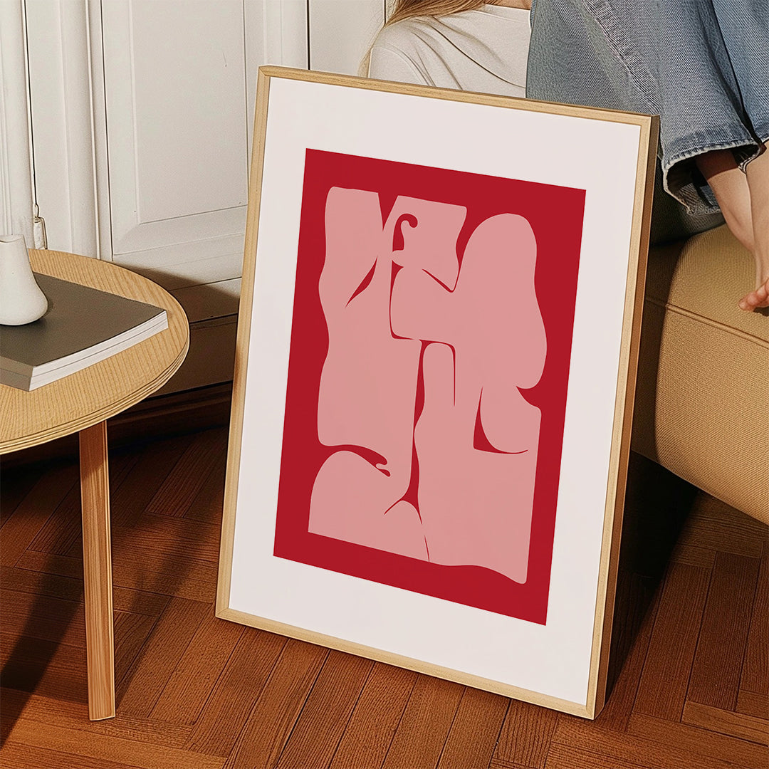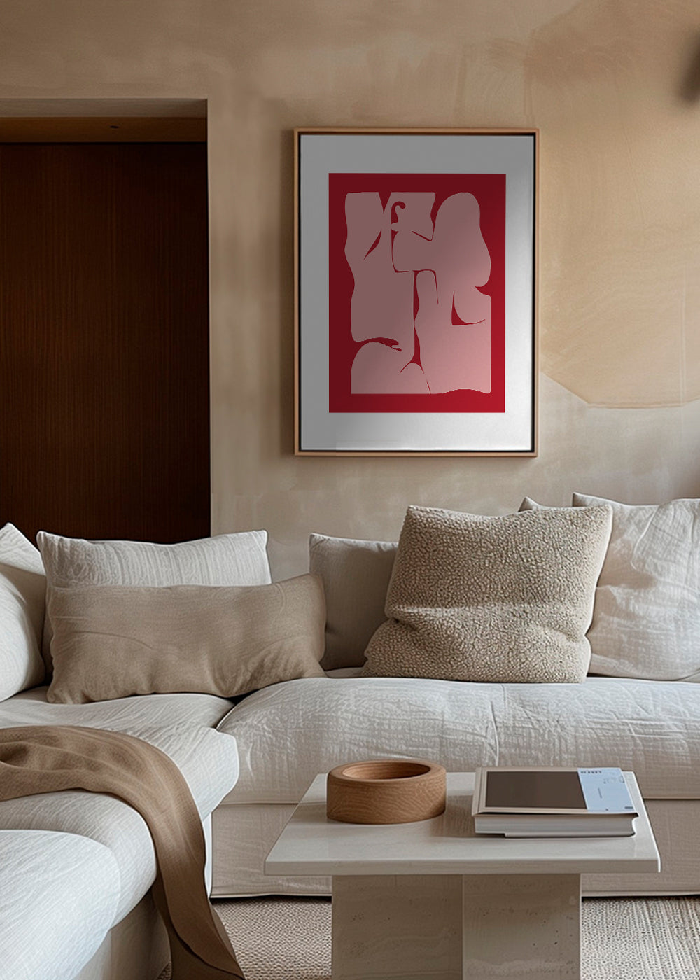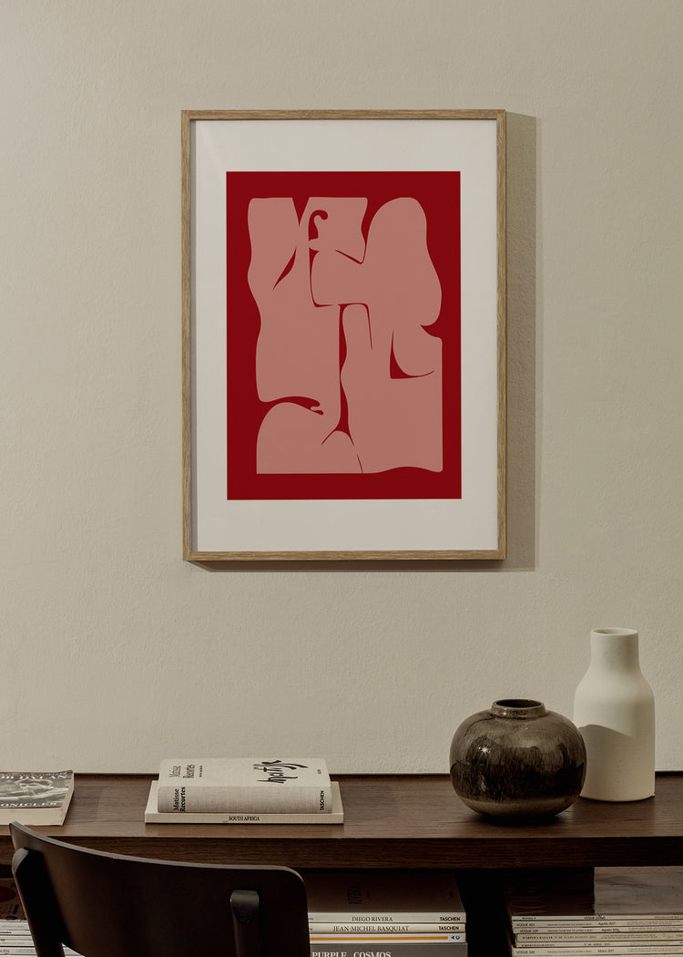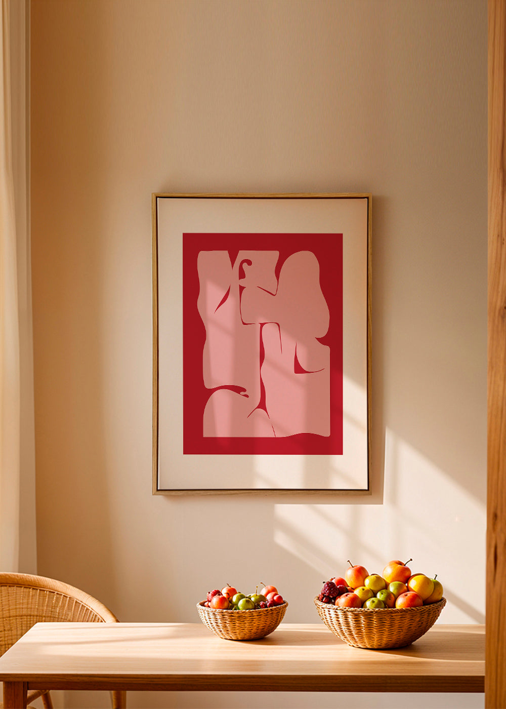 Un quadro della serie di quadri geometrici, realizzata da Nordic Creators, con toni rossi, e nel formato verticale. I quadri geometrici sono un'ottima opzione per decorare spazi moderni e all'avanguardia. I dettagli fanno la differenza. L'immagine include un margine bianco che fa da contrasto all'opera e la valorizza.
