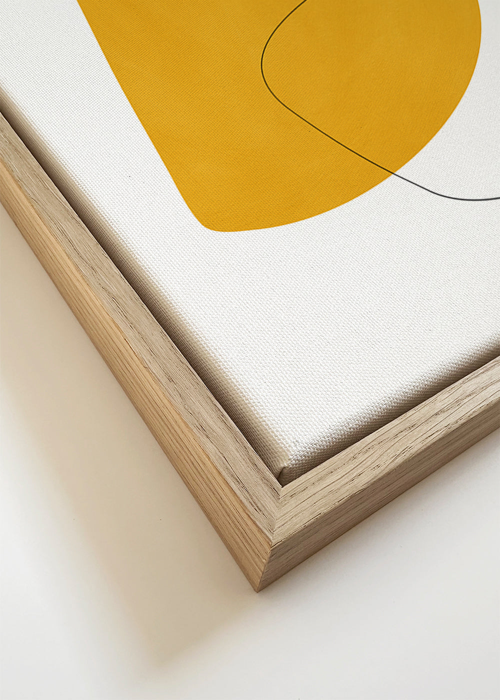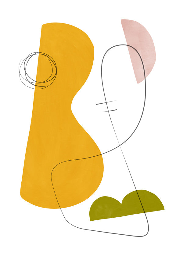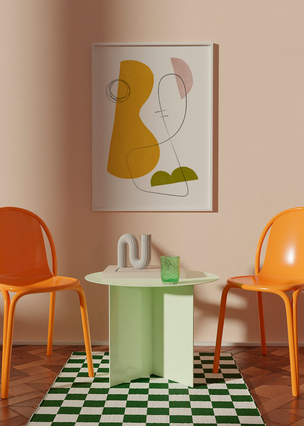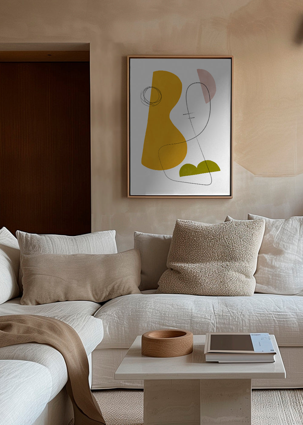 Un design ispirato alla collezione di quadri geometrici, della collezione dell'artista Nouveau Prints, con dei tocchi gialli, e orientata in senso verticale. Le forme geometriche e astratte contribuiscono a creare un ambiente spensierato e creativo. Cambia l'aspetto di una stanza semplicemente aggiungendo dei quadri alle pareti.