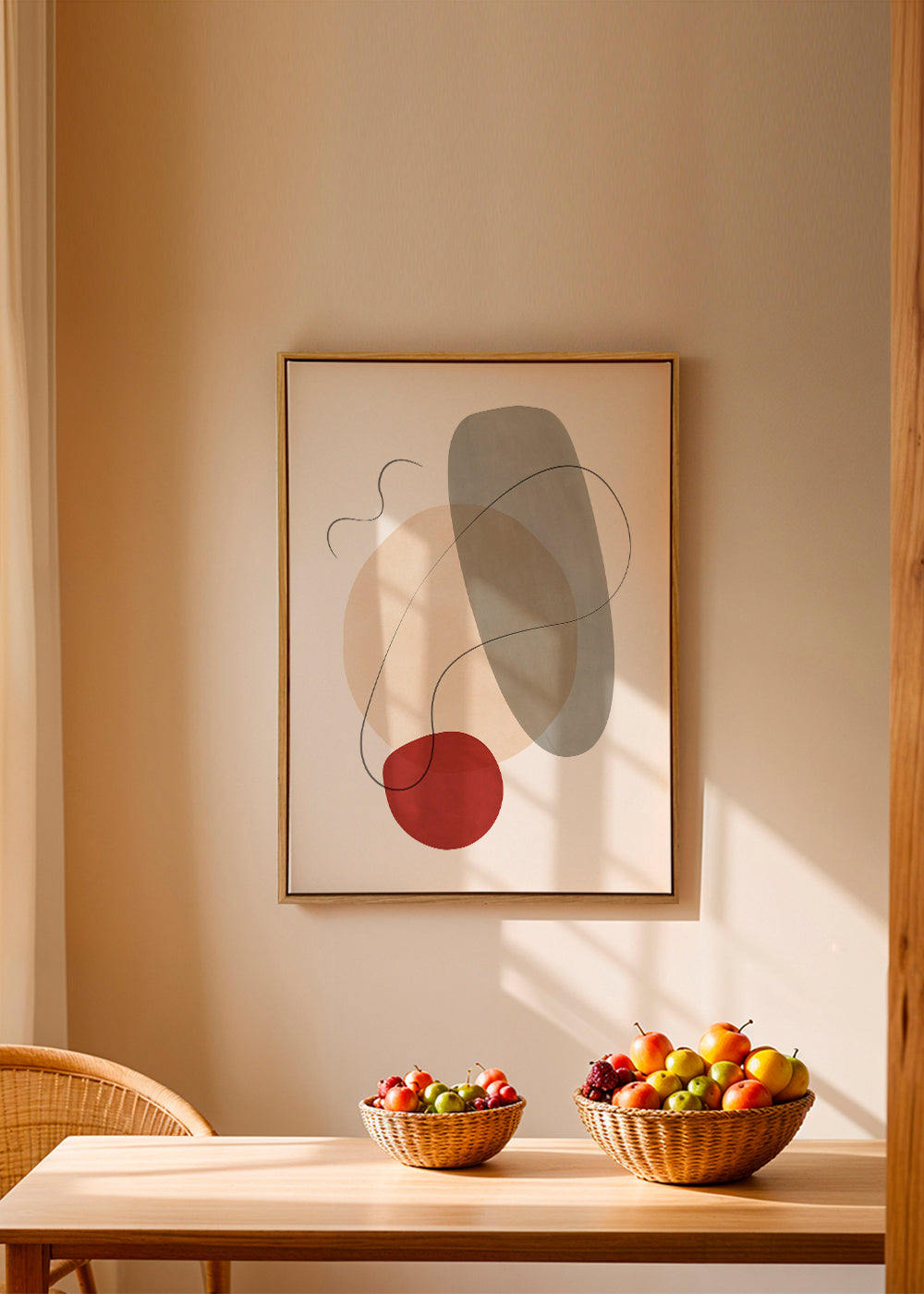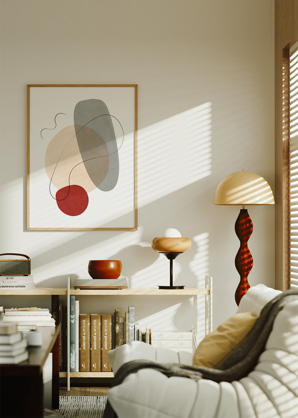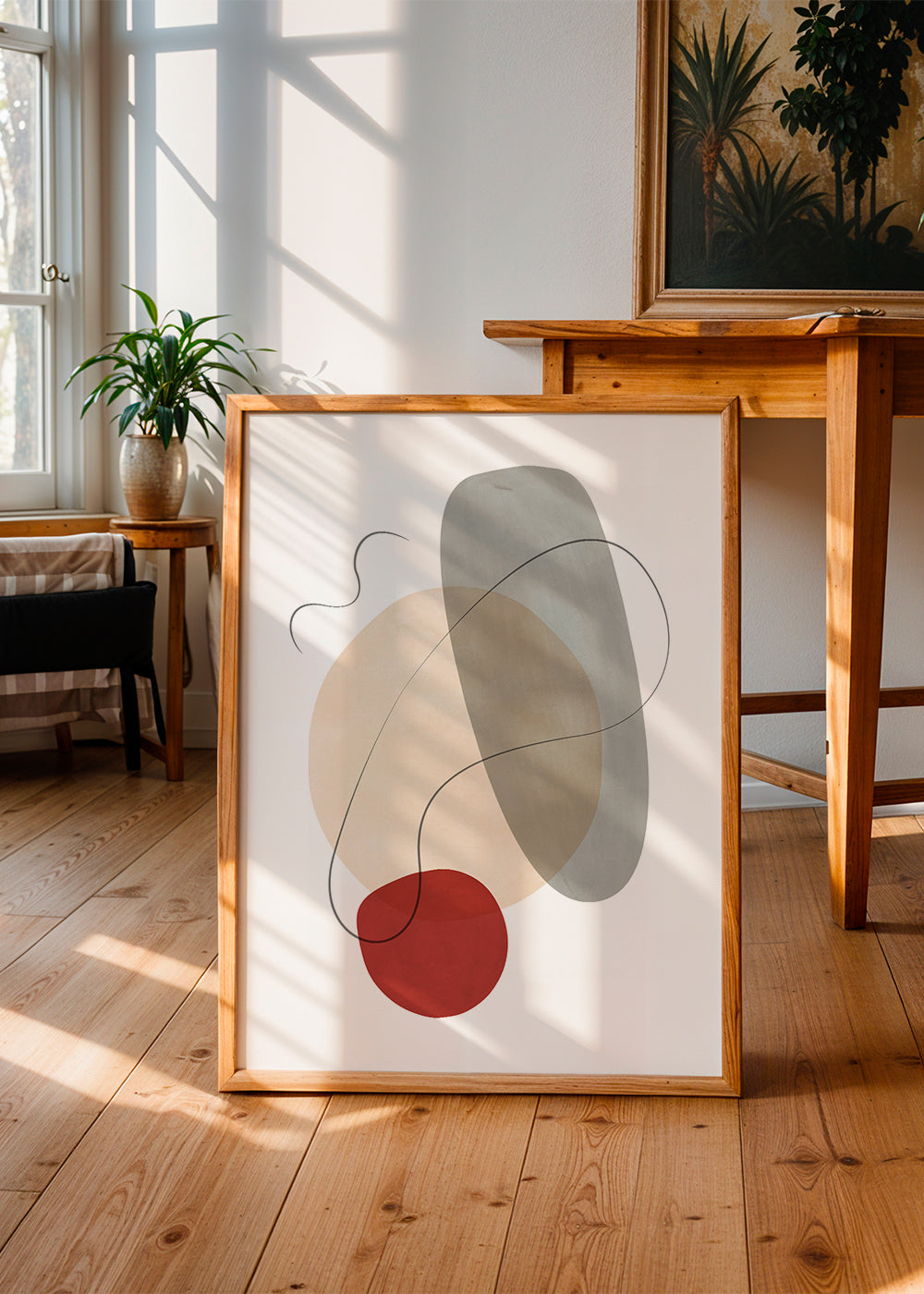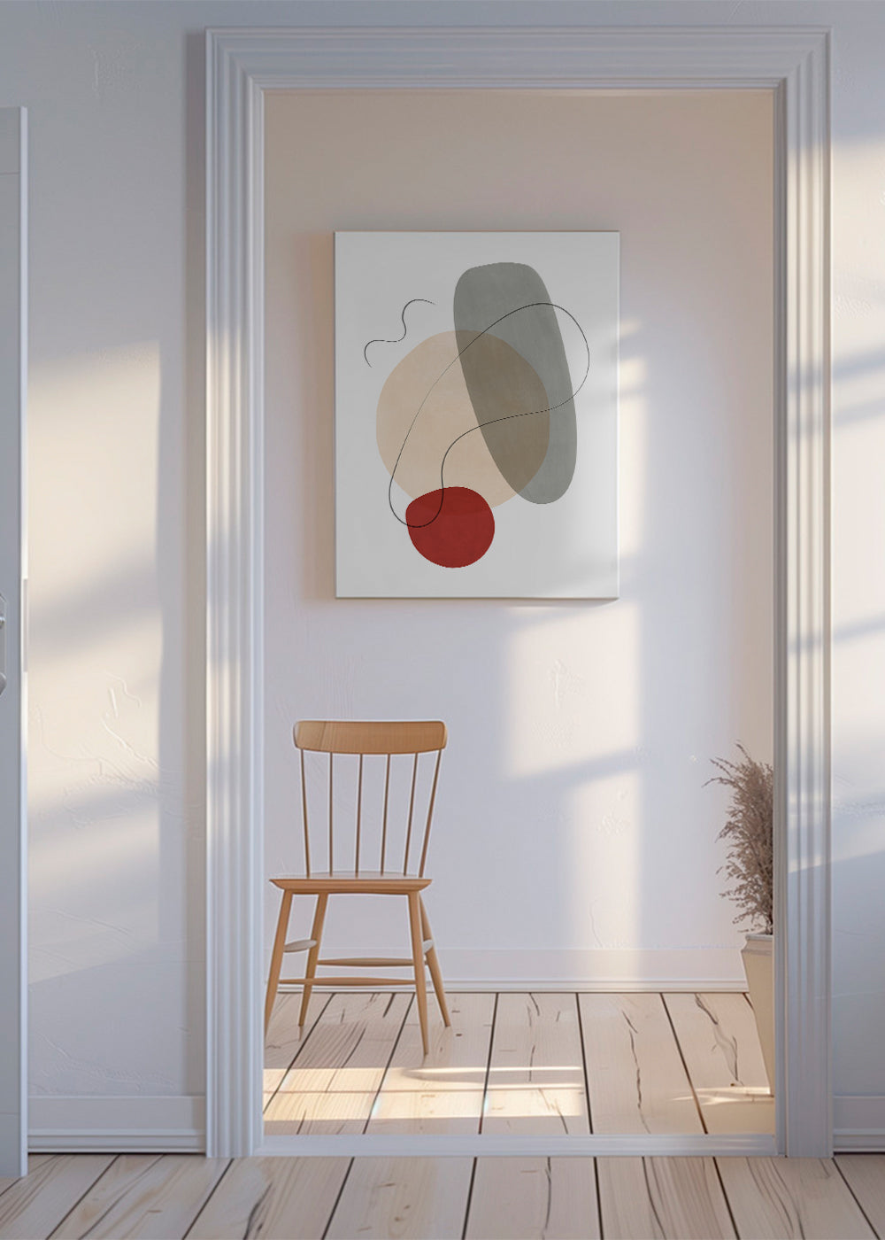 Un quadro dal nostro repertorio di quadri geometrici, creata da Nouveau Prints, con toni rossi, e nel formato verticale. Le forme geometriche e astratte contribuiscono a creare un ambiente spensierato e creativo. È sempre il momento giusto per rinnovare lo stile della tua casa.