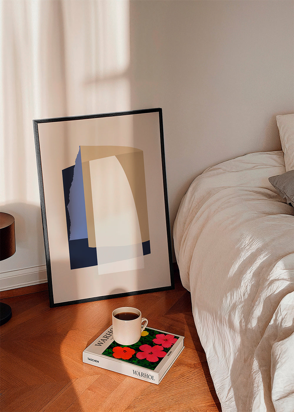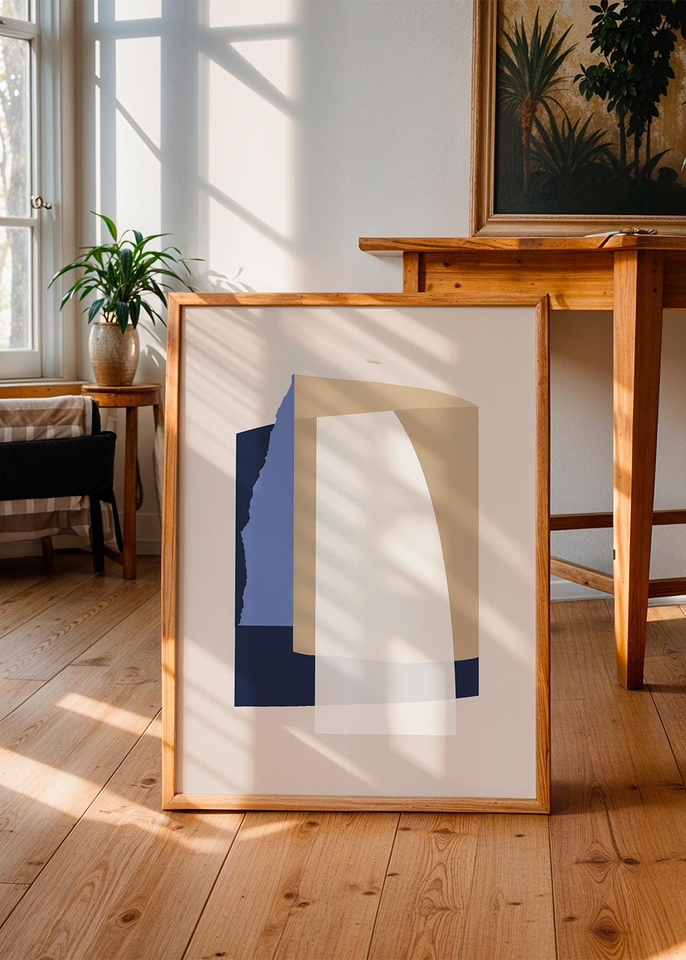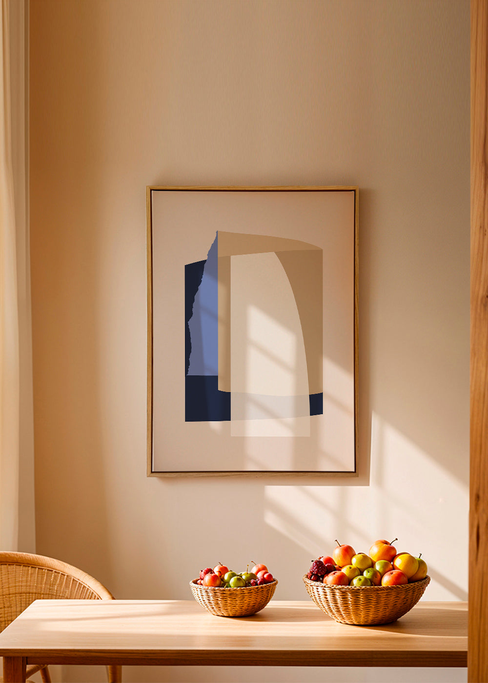 Un design appartenente alla categoria di quadri geometrici, realizzata da Anna Mainz, con tonalità di colori blu, e con posizione verticale. L'arte geometrica è uno stile raffinato per la decorazione delle pareti di casa. Cambia l'aspetto di una stanza semplicemente aggiungendo dei quadri alle pareti.