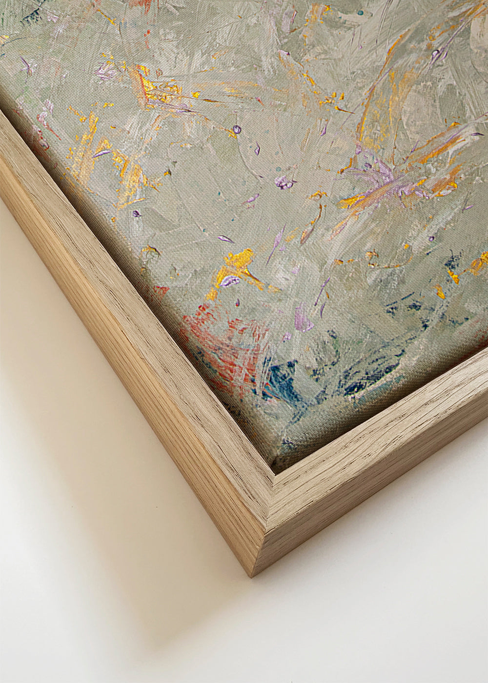 Per evitare rotture, le nostre cornici incorporano vetro acrilico al posto del vetro. Il vetro acrilico riproduce l'effetto del vetro, ma evita possibili danni durante il trasporto o il posizionamento della cornice.