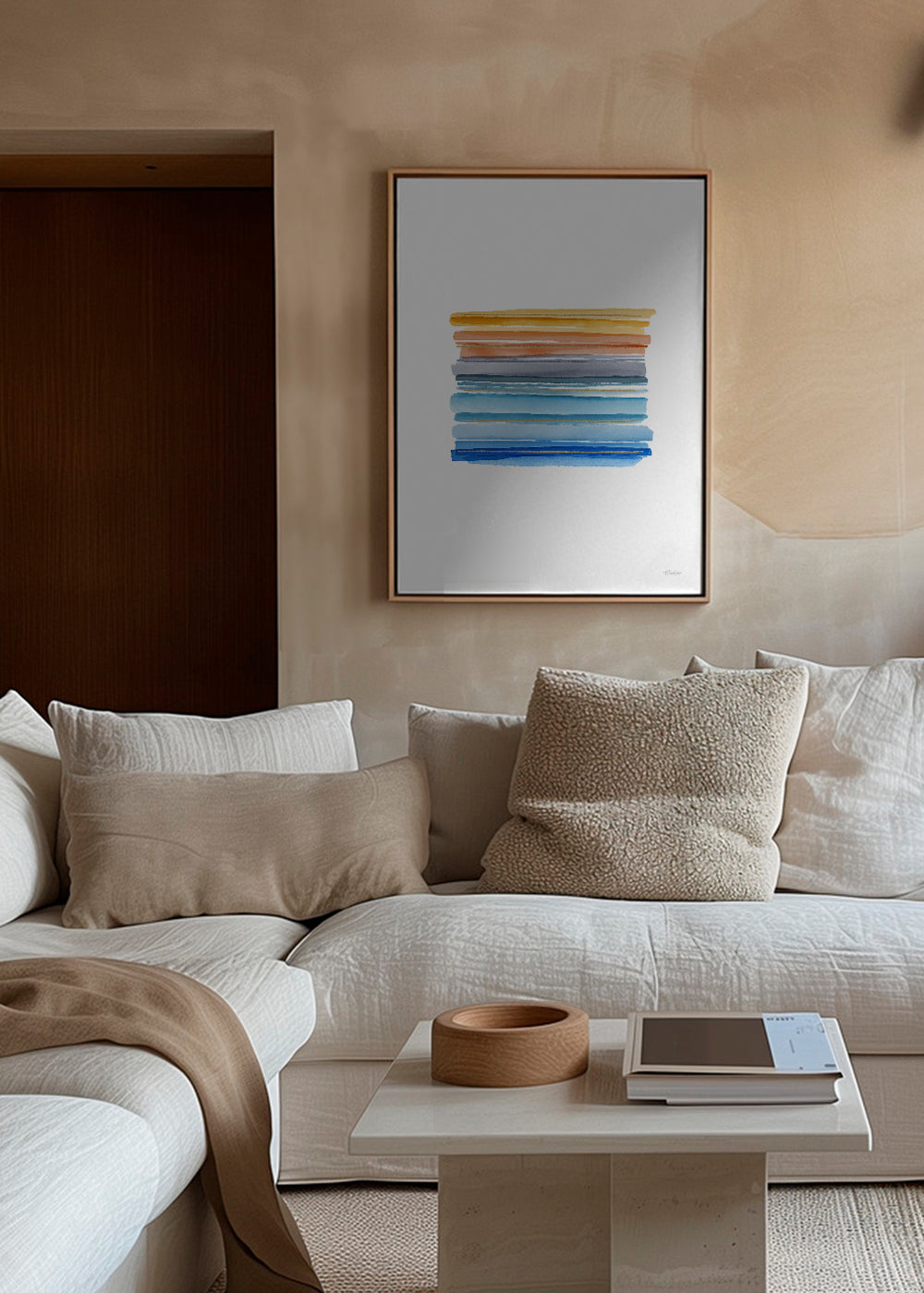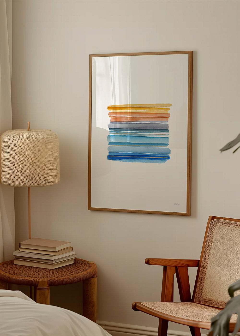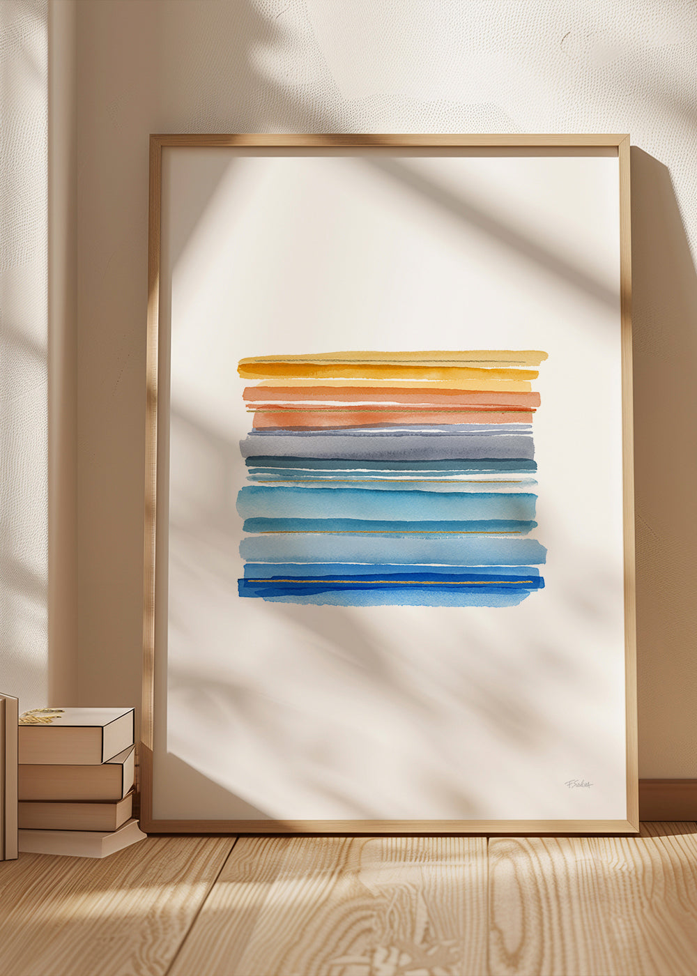 Un poster ispirato alla collezione di quadri geometrici, realizzata da Fabiana Silveira, con dei tocchi blu, e con disposizione verticale. L'arte geometrica è uno stile raffinato per la decorazione delle pareti di casa. Un design raffinato, all'altezza del tuo home decor.