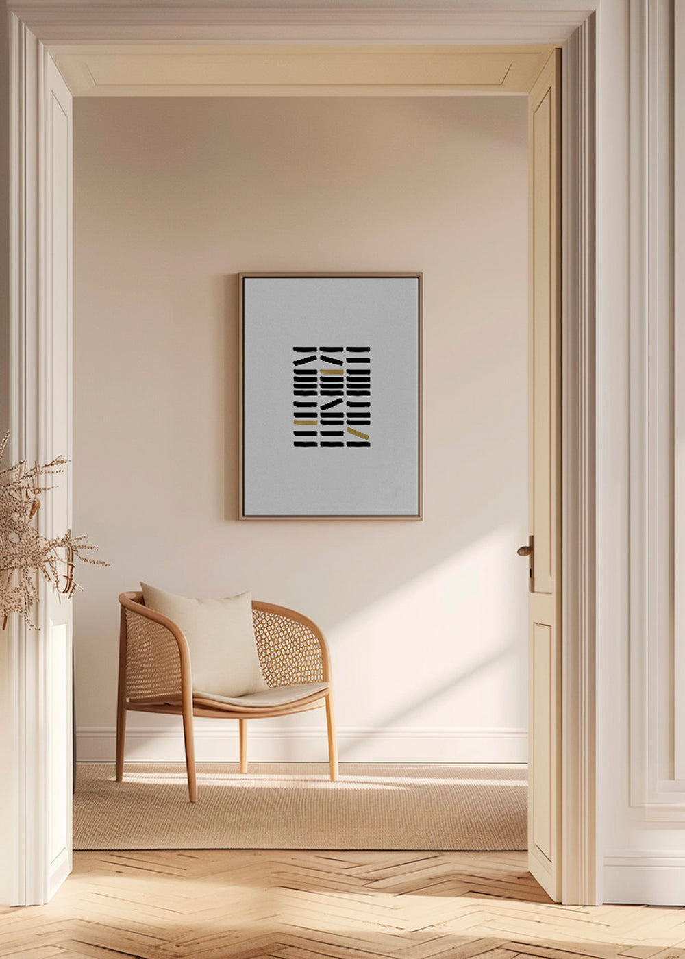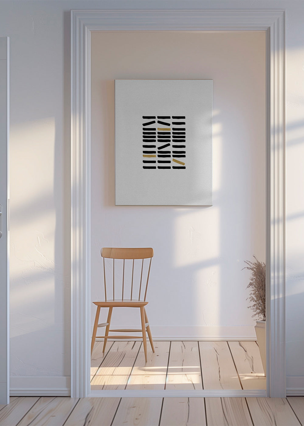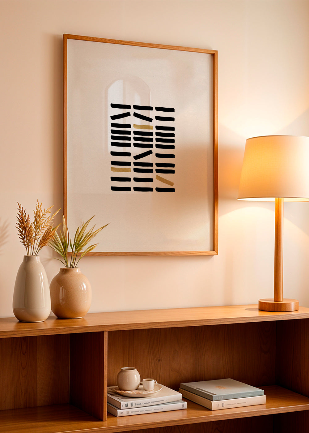 Bella pieza ispirato alla collezione di quadri con pattern, creata da Orara Studio, dalle sfumature dorati, e con disposizione verticale. I quadri geometrici sono un'ottima opzione per decorare spazi moderni e all'avanguardia. Costruisci il tuo angolo preferito.