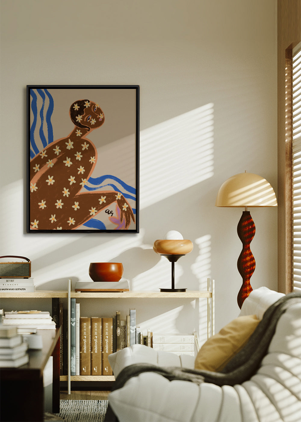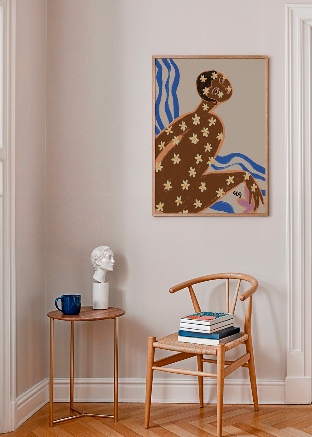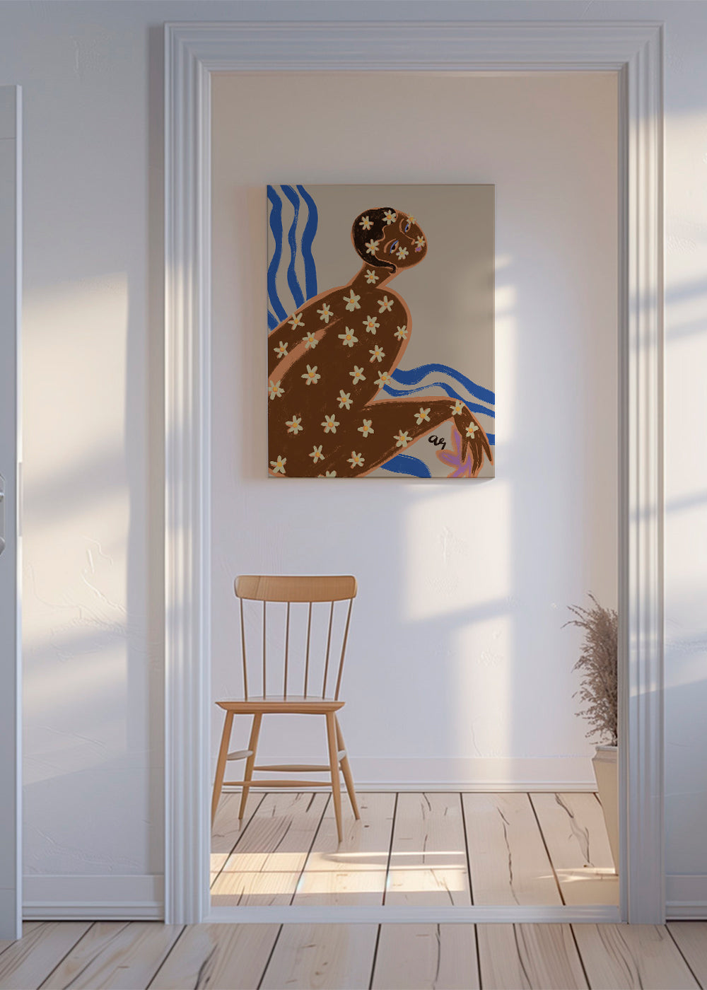 Bello quadro della serie di quadri di donne, della collezione dell'artista 1x, con sfumature dai toni marroni, e da formato verticale. I quadri con illustrazioni sono perfetti da abbinare all'arte minimal e all'arte astratta. Freschezza e originalità.