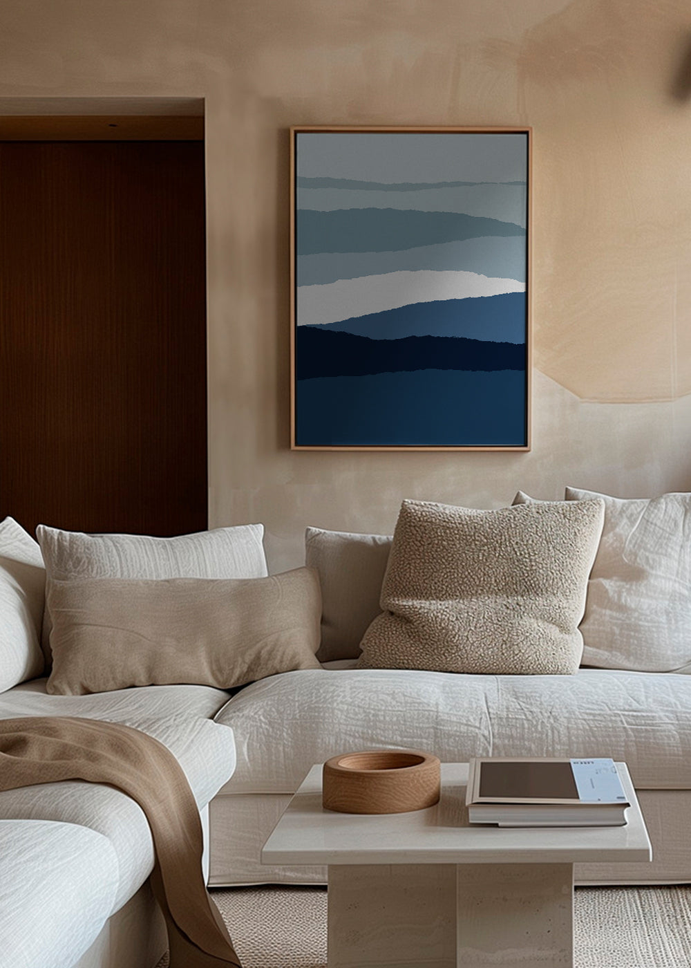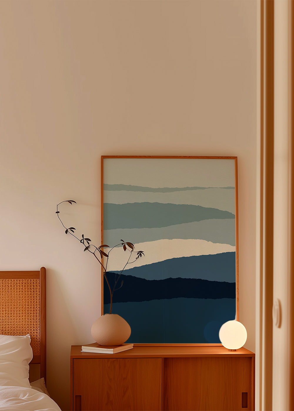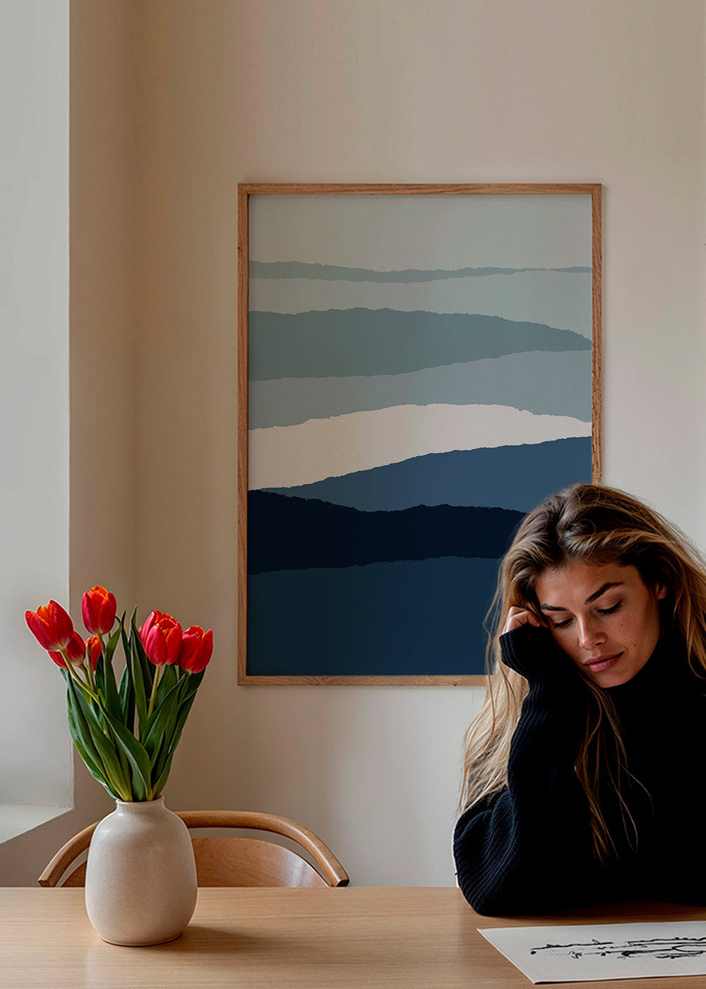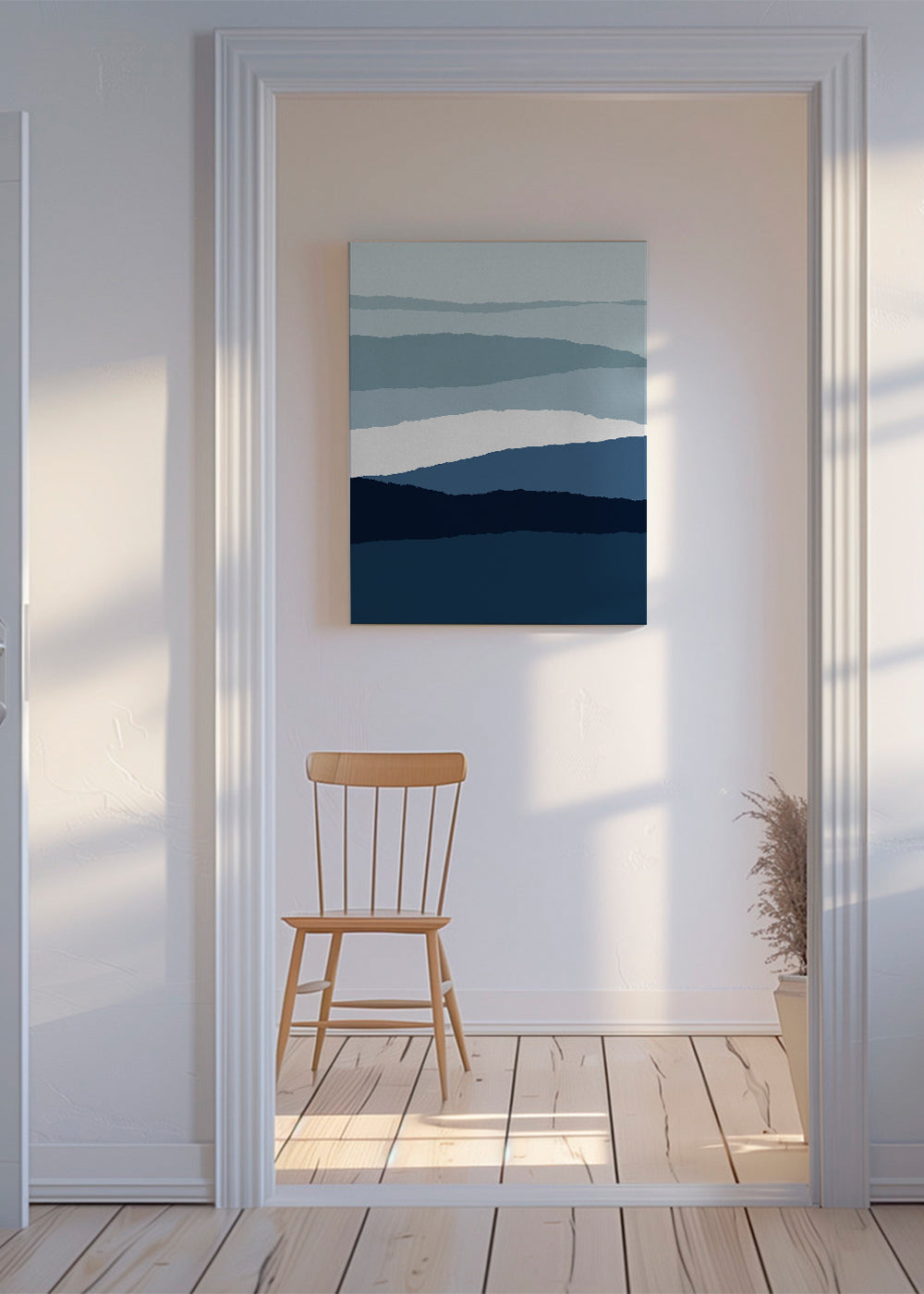Questo design della serie di quadri di paesaggi montani, realizzata da Orara Studio, sui toni blu, e da appendere in posizione verticale. La tranquillità e il senso di libertà che trasmettono i quadri di paesaggi sono unici. Il tocco finale che stavi cercando.