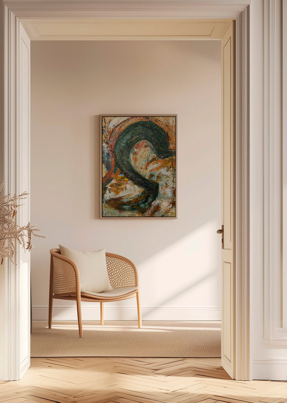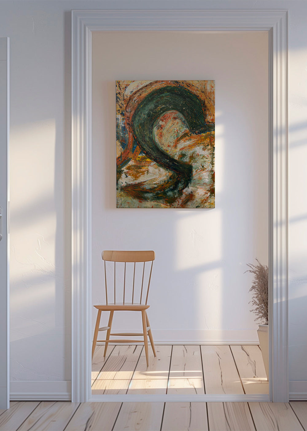 Un design della serie di quadri astratti, creata da Elena Camacho Art, con toni multicolore, e orientata in senso verticale. Si tratta di un'opera di arte astratta che darà un tocco moderno al design dei tuoi ambienti. Un articolo che di sicuro darà un tocco di stile in più all'ambiente.