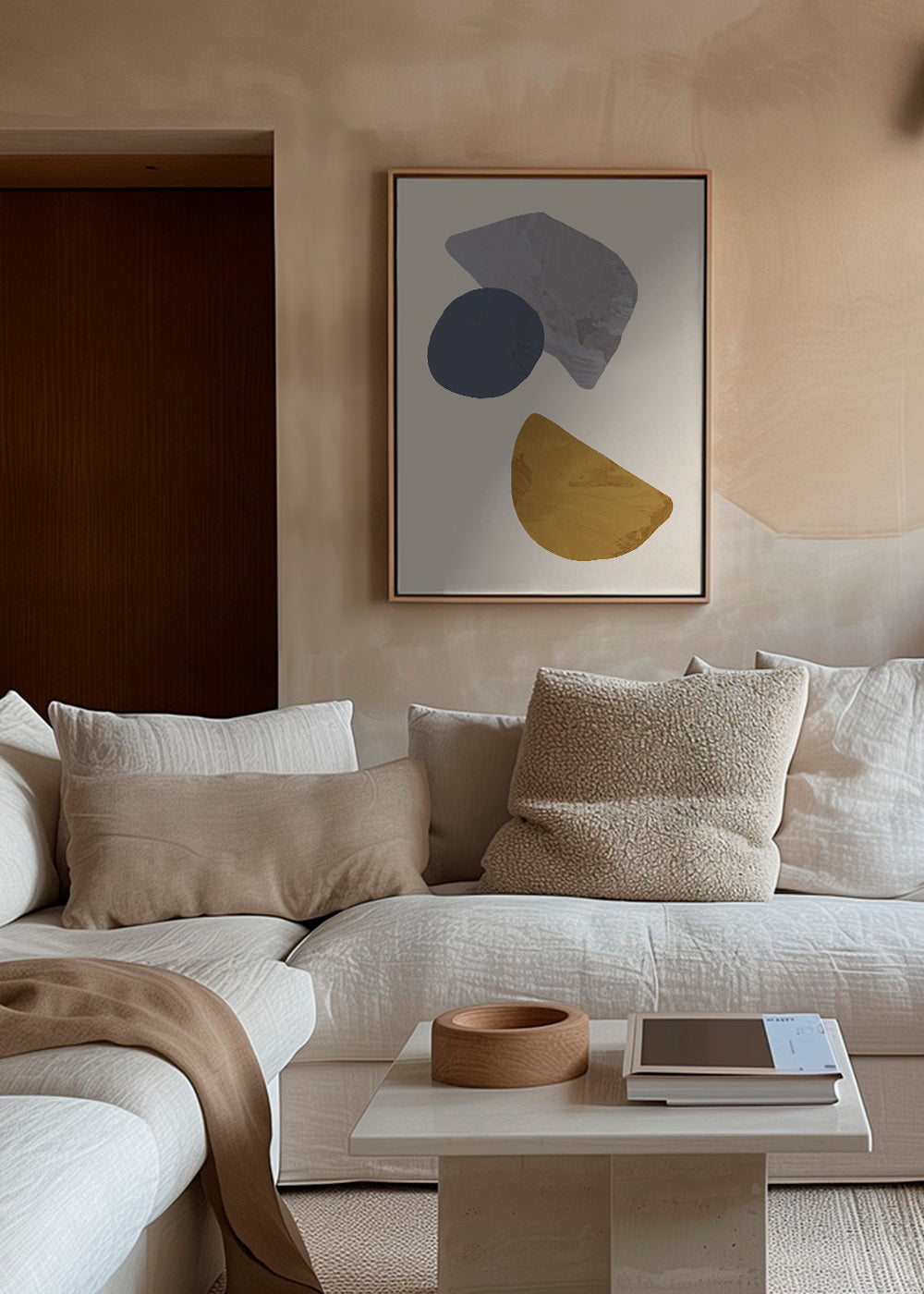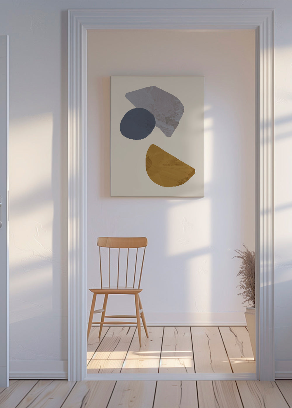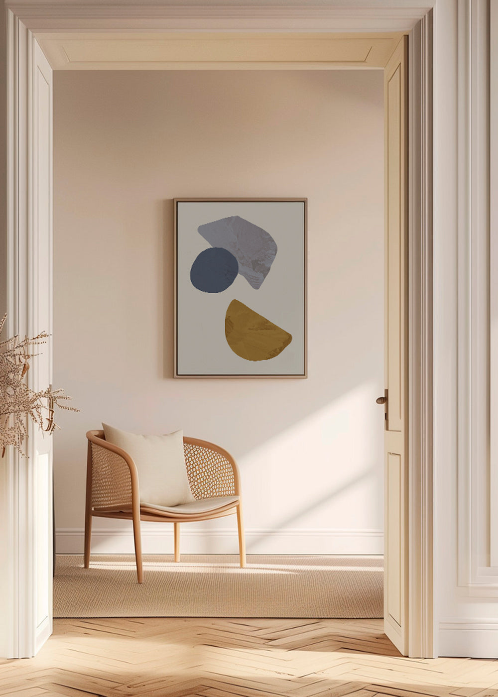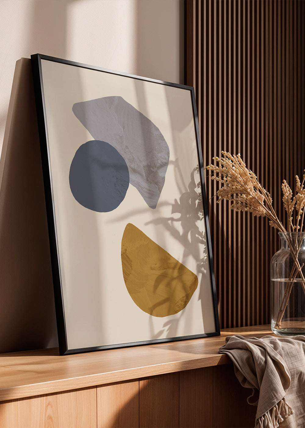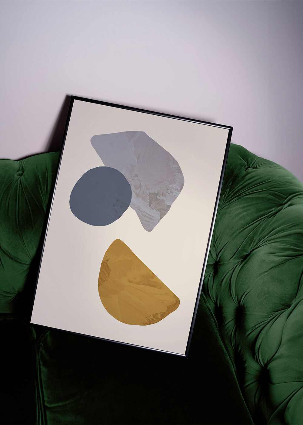 Bello poster appartenente alla categoria di quadri geometrici, con toni blu, e da appendere in posizione verticale. Le forme geometriche e astratte contribuiscono a creare un ambiente spensierato e creativo. Crea una perfetta decorazione da parete.