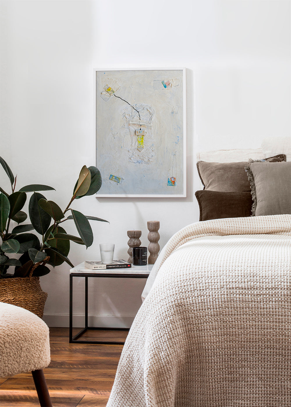 Energia nelle pennellate. Design elegante Realizzato dal rinomato Elena Camacho Art. Mostra la vivacità di beige stilizzato nel formato verticali. Questo design è ideale per decorare ambienti moderni abbinalo ad altri quadri astratti per ottenere uno stile di home decor all'avanguardia. Trasforma le tue pareti noiose
