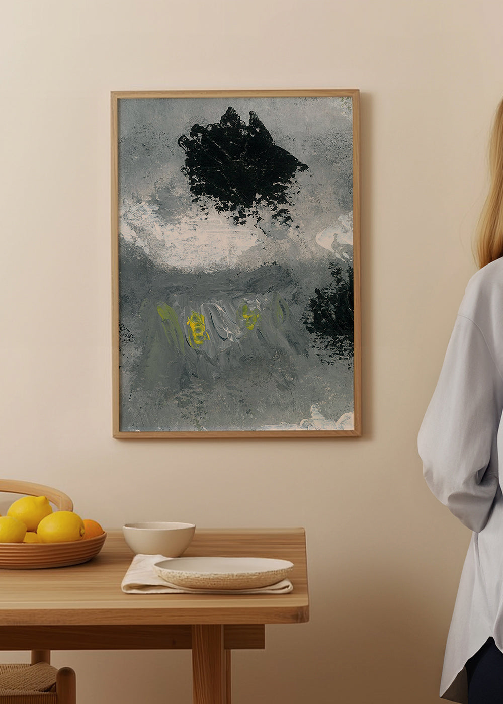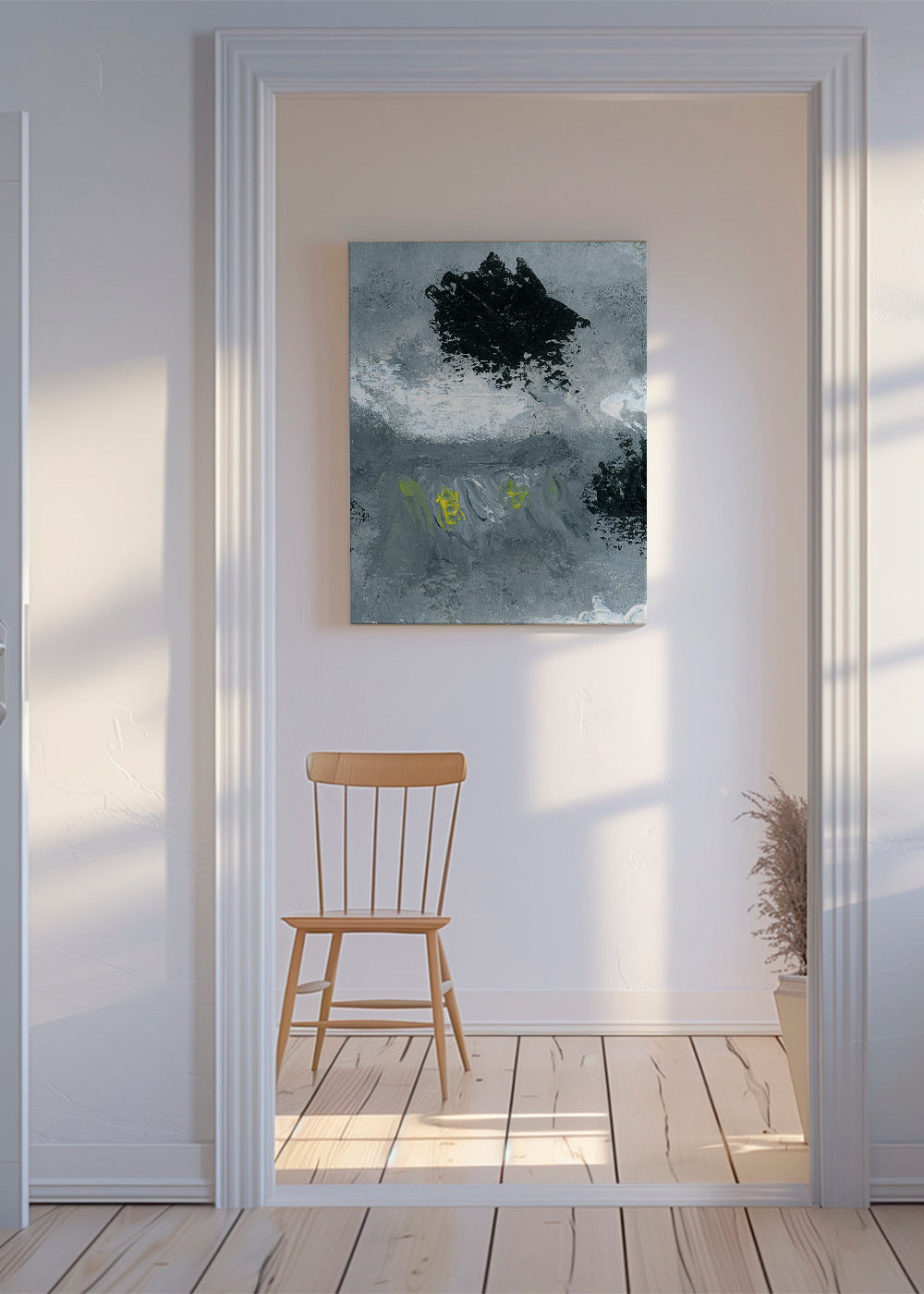 Un design della collezione quadri astratti, ideata da Elena Camacho Art, con sfumature dai toni grigio, e da appendere in posizione verticale. Questo design è ideale per decorare ambienti moderni. Abbinalo ad altri quadri astratti per ottenere uno stile di home decor all'avanguardia. Lasciati conquistare dall'arte.
