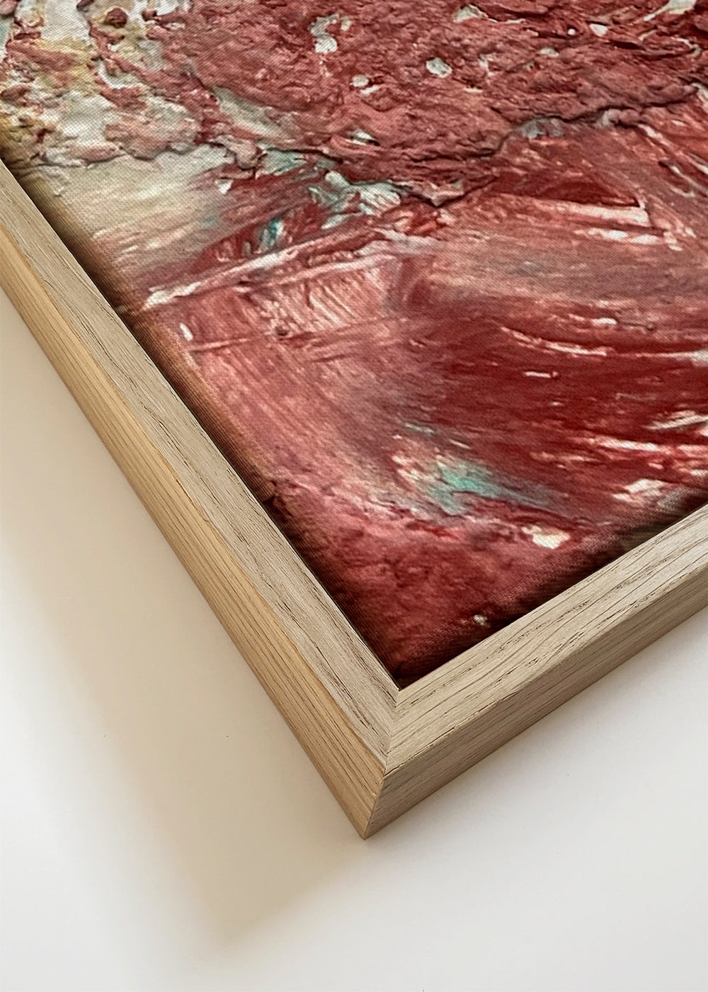 Per evitare rotture, le nostre cornici incorporano vetro acrilico al posto del vetro. Il vetro acrilico riproduce l'effetto del vetro, ma evita possibili danni durante il trasporto o il posizionamento della cornice.