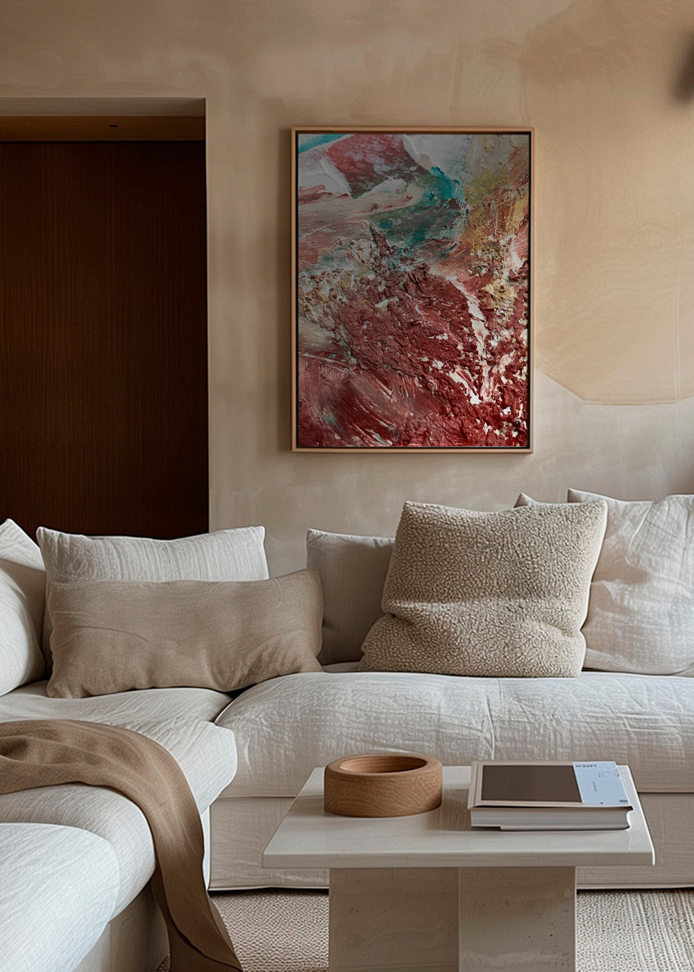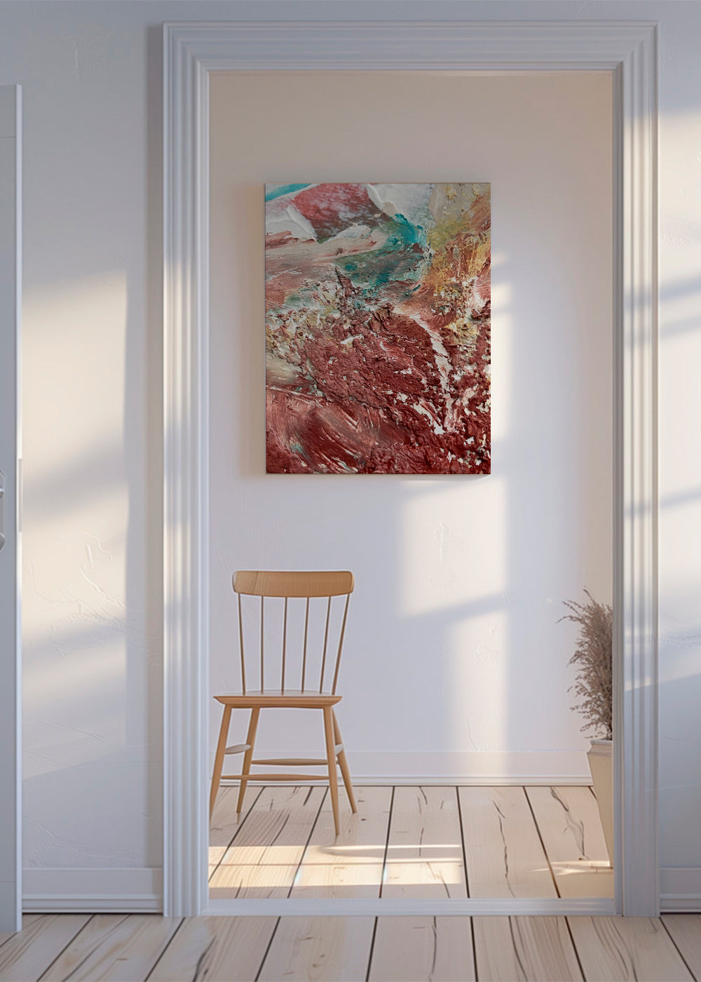 Una opera appartenente alla categoria di quadri astratti, originale di Elena Camacho Art, con colori rossi, e da formato verticale. Questo design è ideale per decorare ambienti moderni. Abbinalo ad altri quadri astratti per ottenere uno stile di home decor all'avanguardia. Una parete spoglia è come una tela bianca da dipingere.