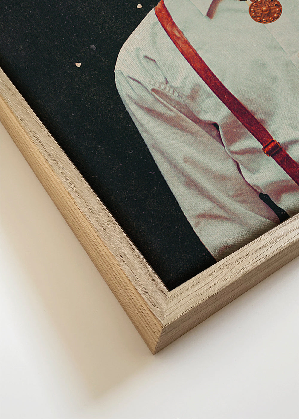 Per evitare rotture, le nostre cornici incorporano vetro acrilico al posto del vetro. Il vetro acrilico riproduce l'effetto del vetro, ma evita possibili danni durante il trasporto o il posizionamento della cornice.