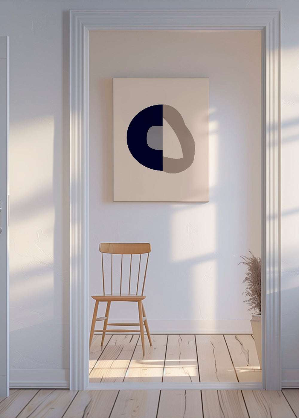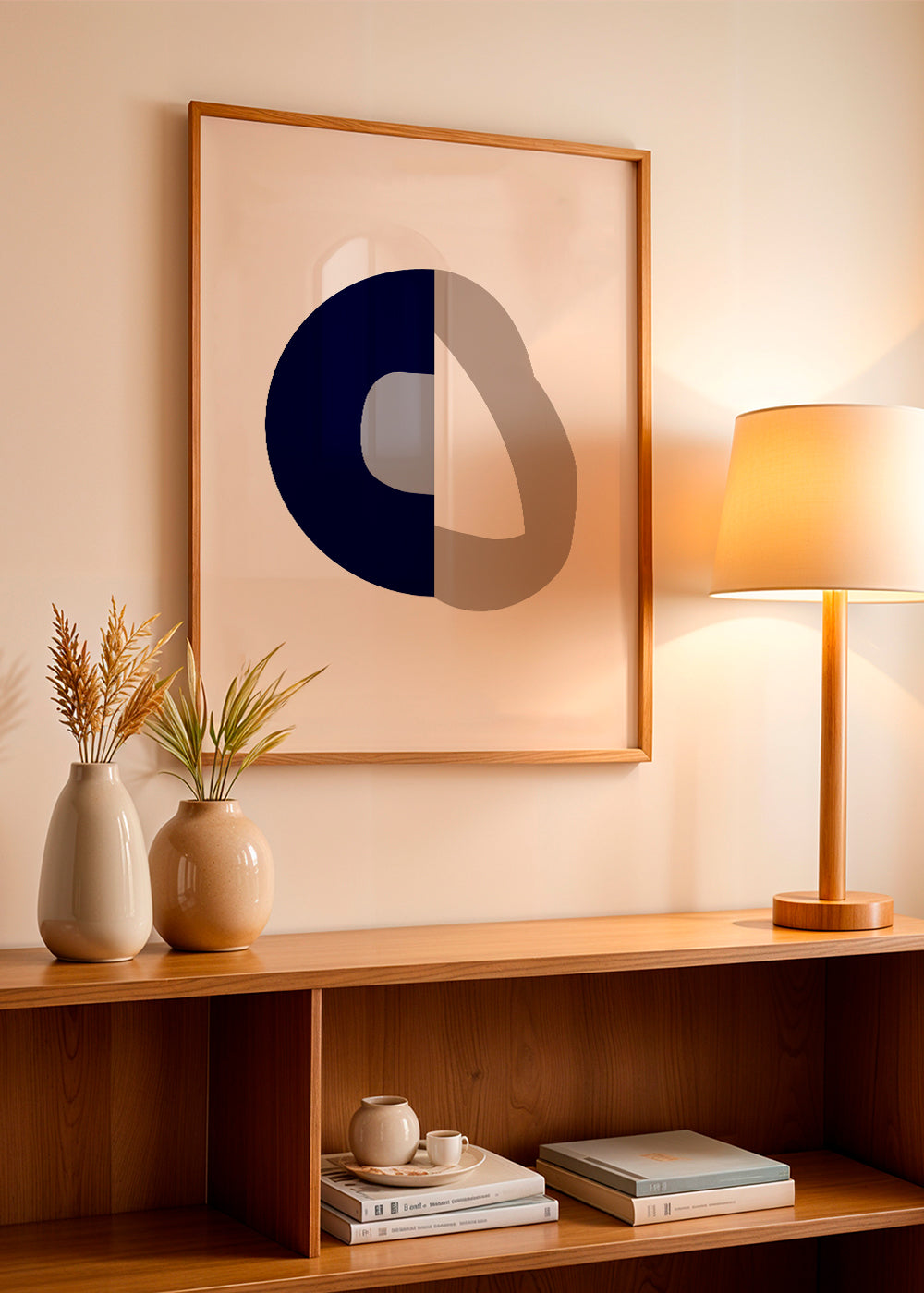 Una opera nello stile dei nostri quadri geometrici, dell'artista Anna Mainz, con sfumature dai colori blu, e orientata in senso verticale. Quest'opera con motivi astratti è ideale da abbinare a quadri geometrici e di arte astratta. Cambia l'aspetto di una stanza semplicemente aggiungendo dei quadri alle pareti.