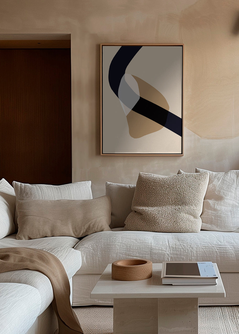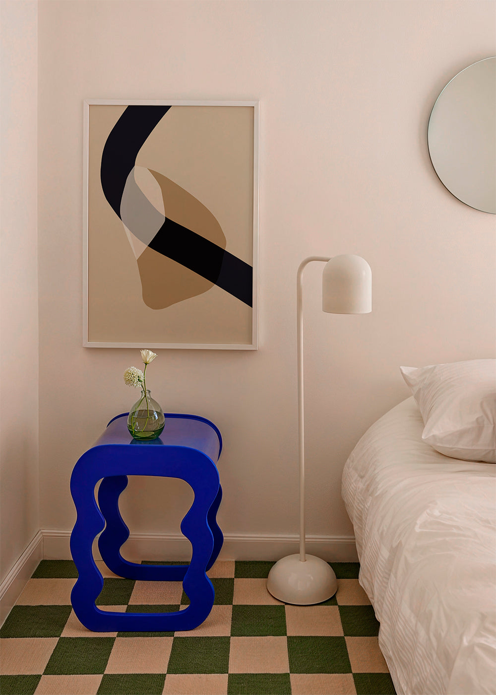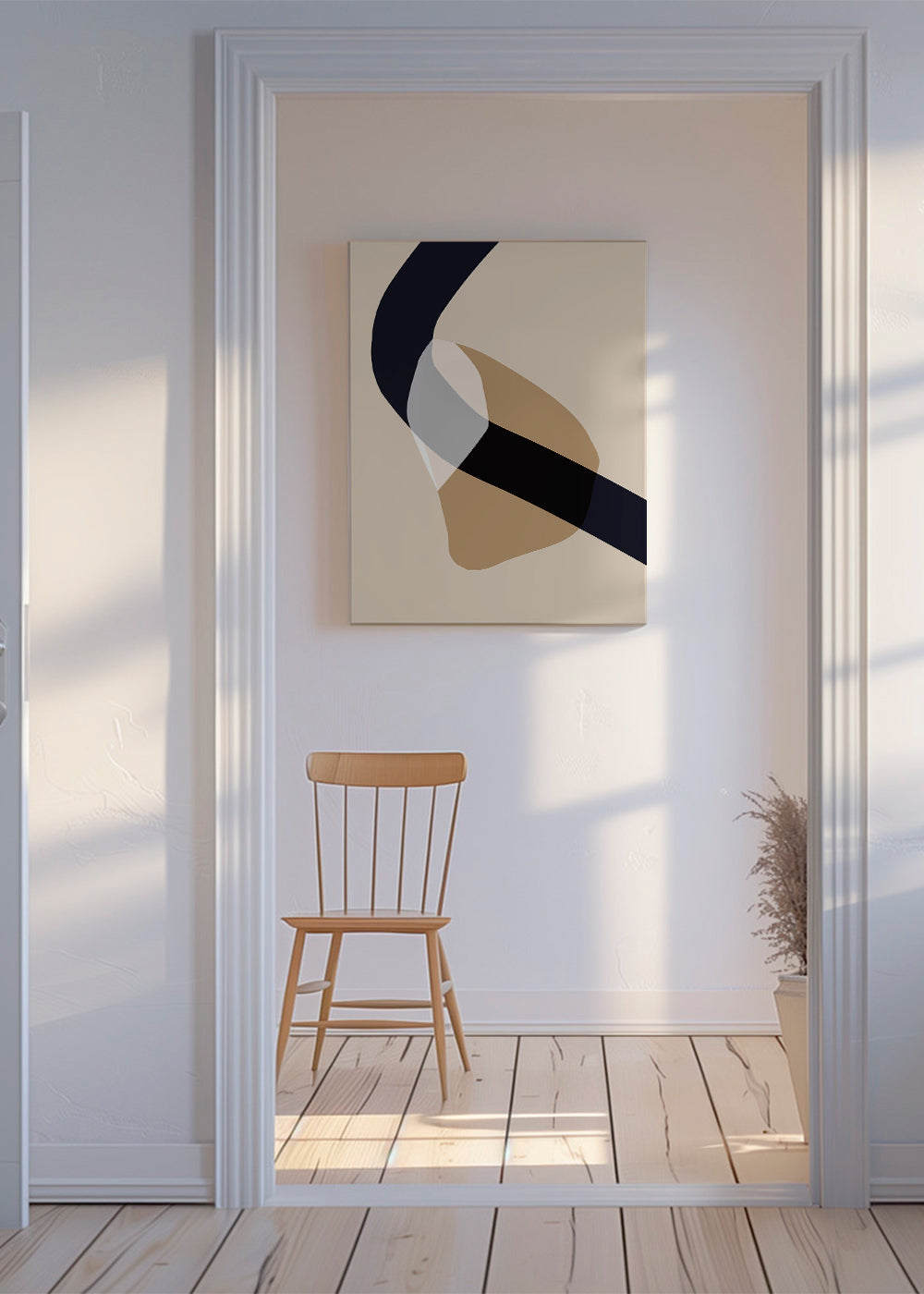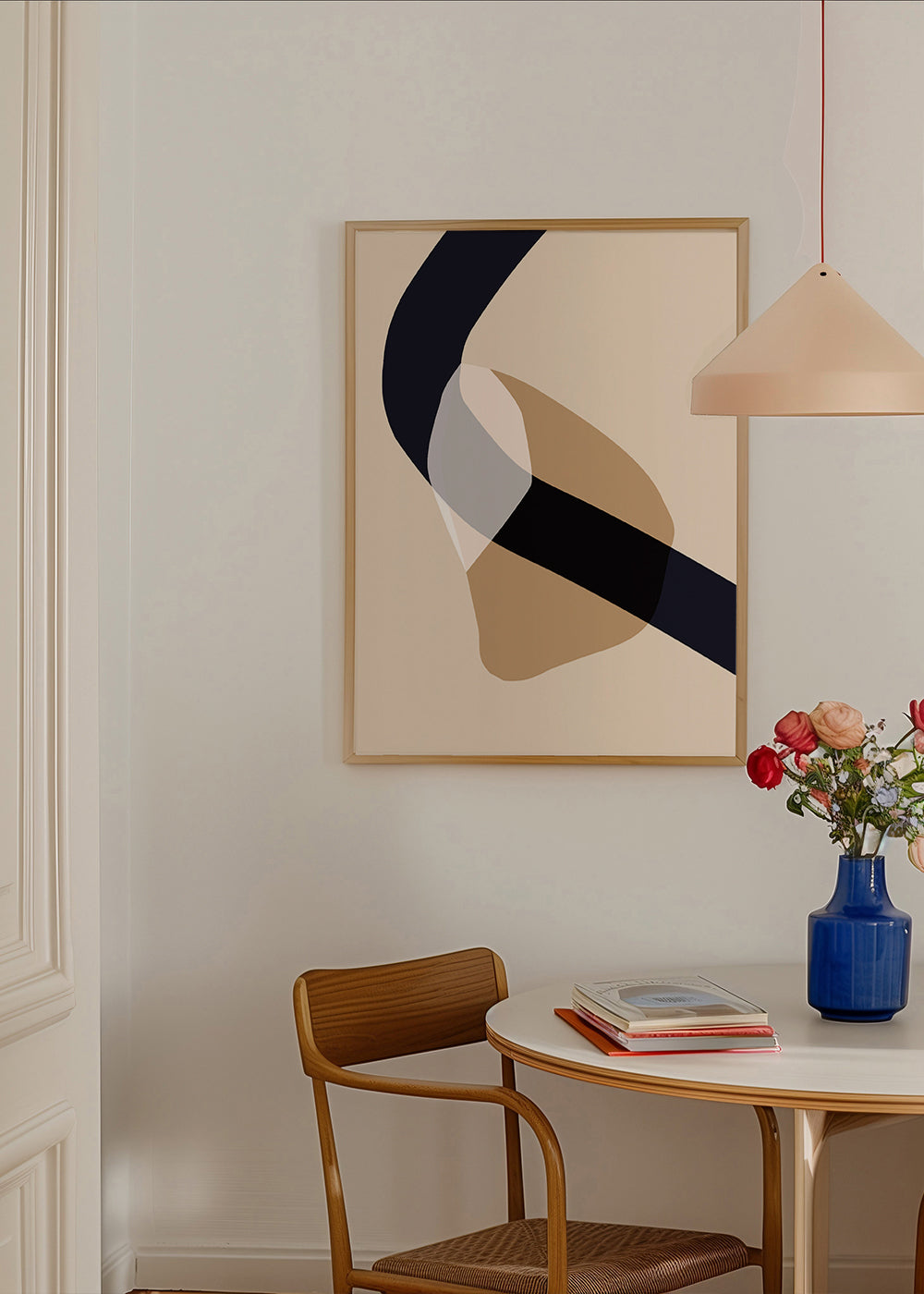 Un poster della nostra collezione di quadri geometrici, dell'artista Anna Mainz, con dei tocchi blu, e ideale da mettere in posizione verticale. L'arte geometrica è uno stile raffinato per la decorazione delle pareti di casa. Pareti eleganti per abitazioni chic.