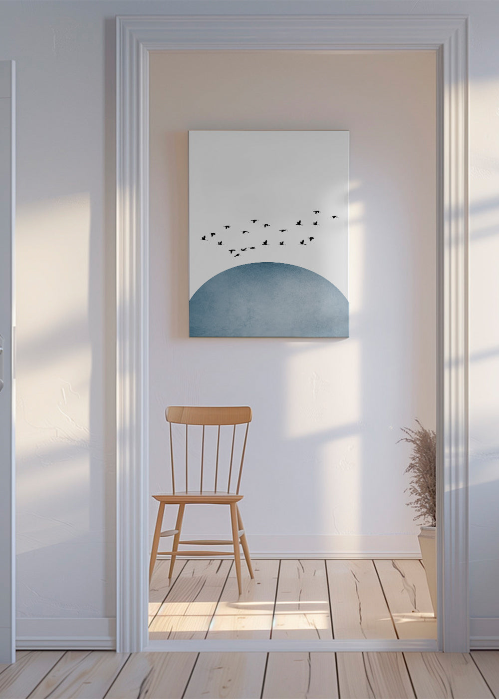 Un design dal nostro repertorio di quadri con uccelli, della collezione dell'artista Bondecco, con sfumature dai toni blu, e orientata in senso verticale. La natura è una delle più grandi opere d'arte che esistono, non credi? Abbina i nostri quadri di paesaggi per ottenere uno stile di home decor che trasmetta freschezza. Cambia il look dei tuoi ambienti con un tocco artistico.