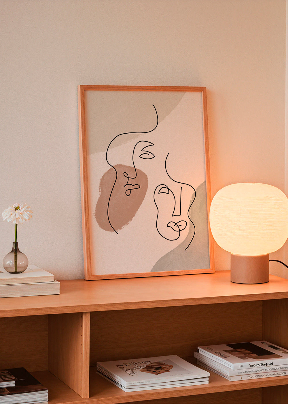 Bello quadro ispirato alla collezione di quadri con linee, creata da Veronika Boulová, con colori marroni, e con orientamento verticale. Si tratta di un'illustrazione semplice e pulita, che puoi abbinare ad altre illustrazioni per realizzare una composizione artistica. Le pareti decorate con i quadri sono il non plus ultra.