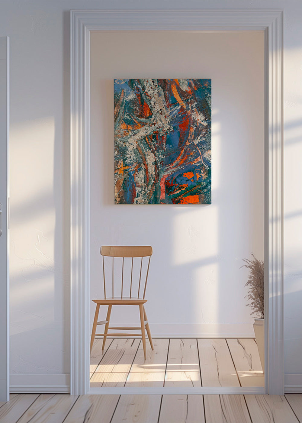 Un quadro ispirato alla collezione di quadri astratti, della collezione dell'artista Elena Camacho Art, sui toni multicolore, e con disposizione verticale. Si tratta di un'opera di arte astratta che darà un tocco moderno al design dei tuoi ambienti. Freschezza e originalità.