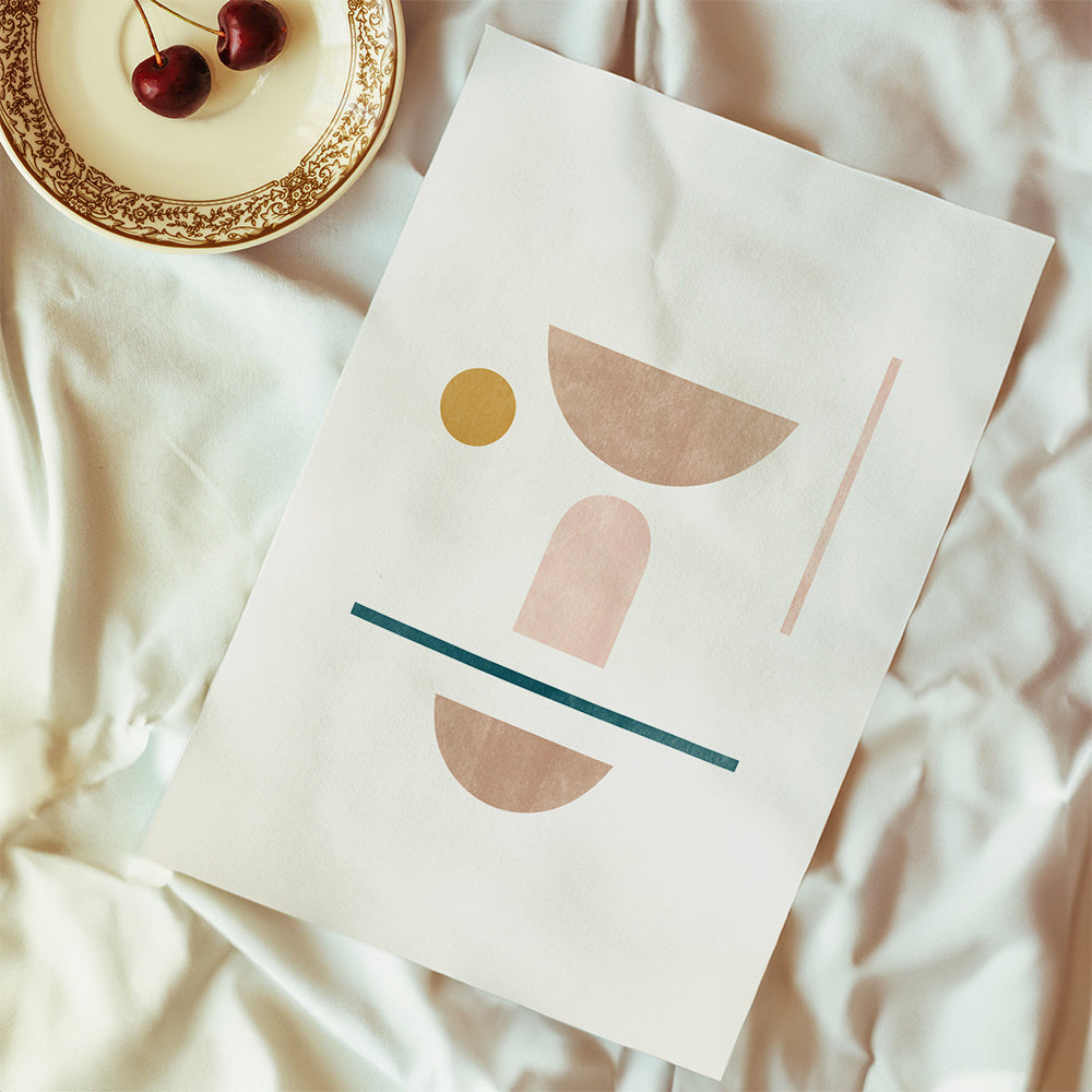 Un poster ispirato alla collezione di quadri geometrici, dell'artista Kookie Pixel, dalle sfumature blu, e con orientamento verticale. L'arte geometrica è uno stile raffinato per la decorazione delle pareti di casa. La personalità di una casa passa per le sue pareti.