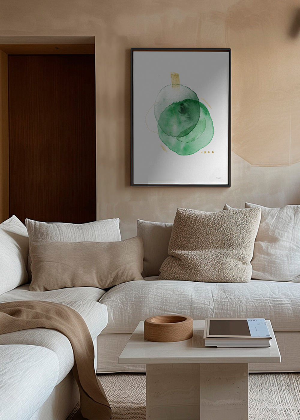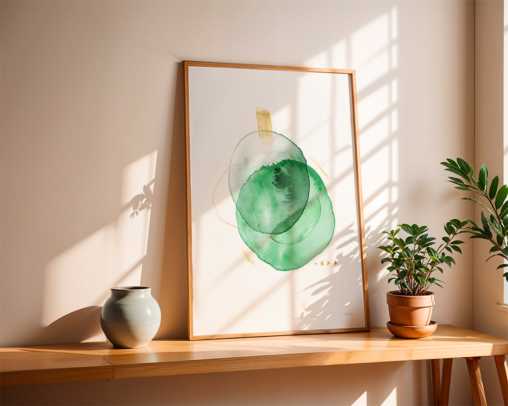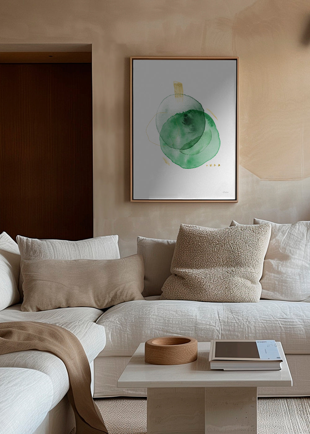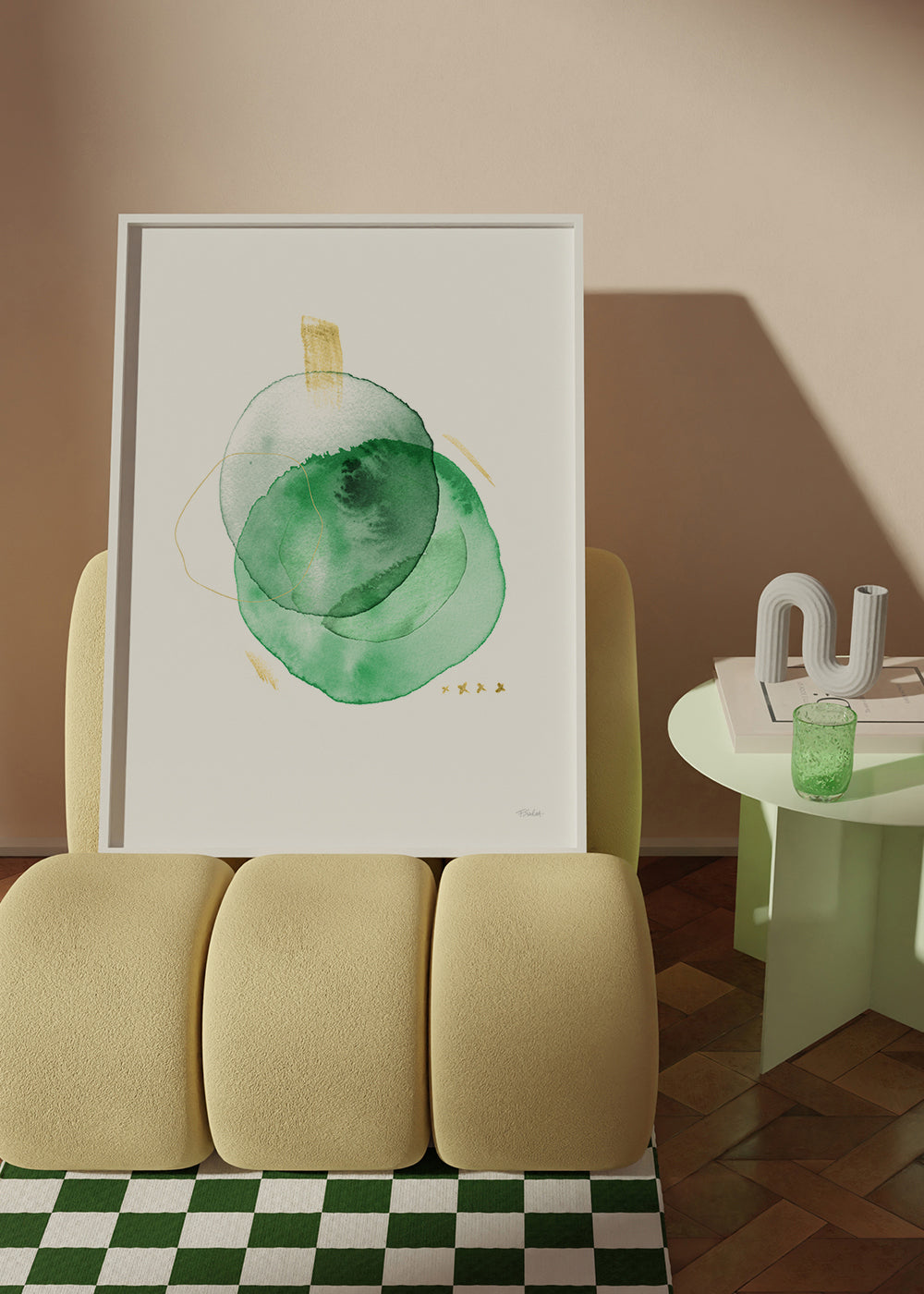 Un quadro della nostra selezione di quadri geometrici, della collezione dell'artista Fabiana Silveira, sui toni verdi, e con posizione verticale. Le forme geometriche e astratte contribuiscono a creare un ambiente spensierato e creativo. Trasforma i tuoi ambienti a partire dalle pareti.