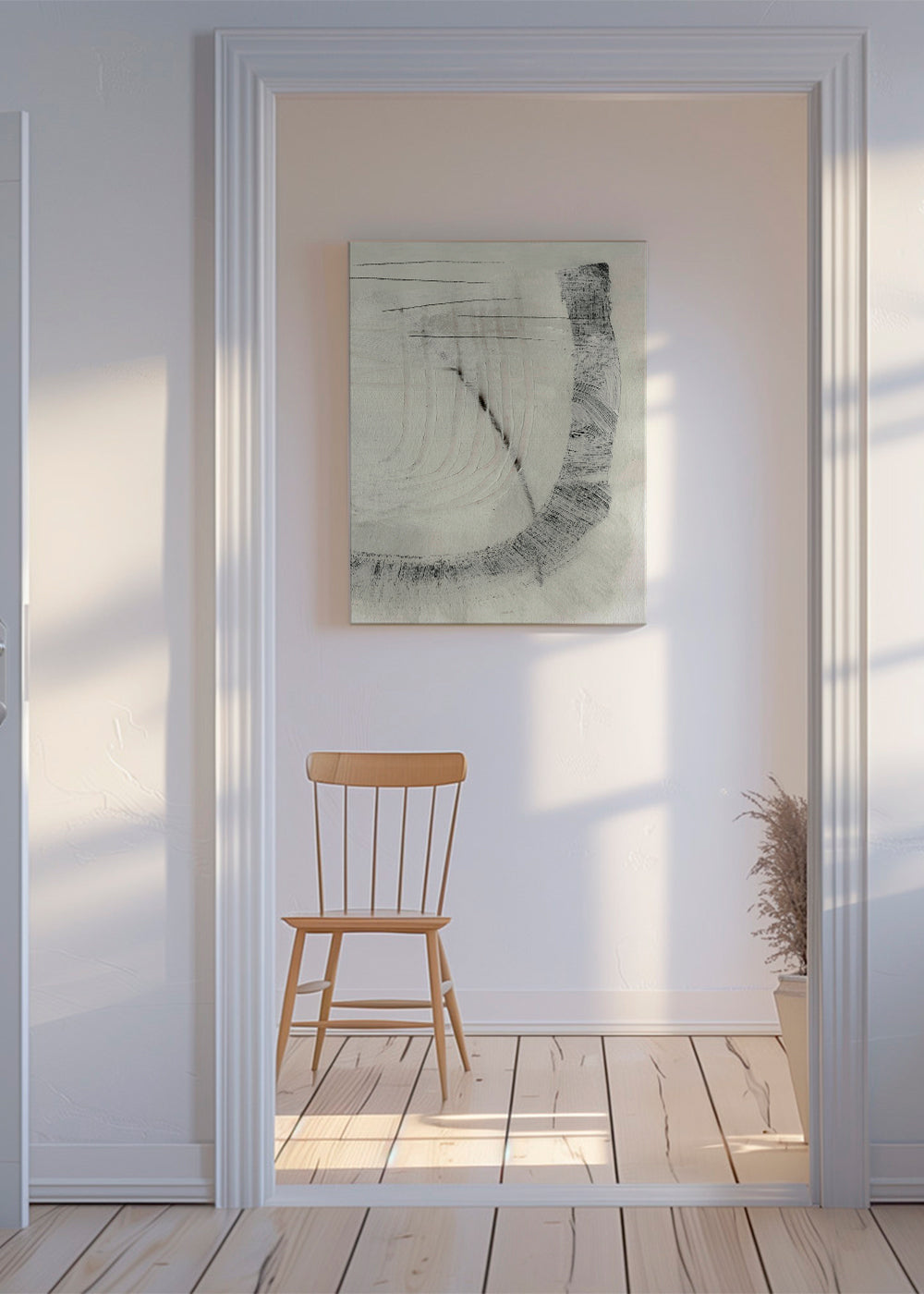 Questa opera ispirato alla collezione di quadri astratti, di 1x, sui toni grigio, e da appendere in posizione verticale. L'arte astratta stimola la nostra mente e ci fa riflettere sul significato delle opere. Lo stile della tua casa è nelle tue mani.