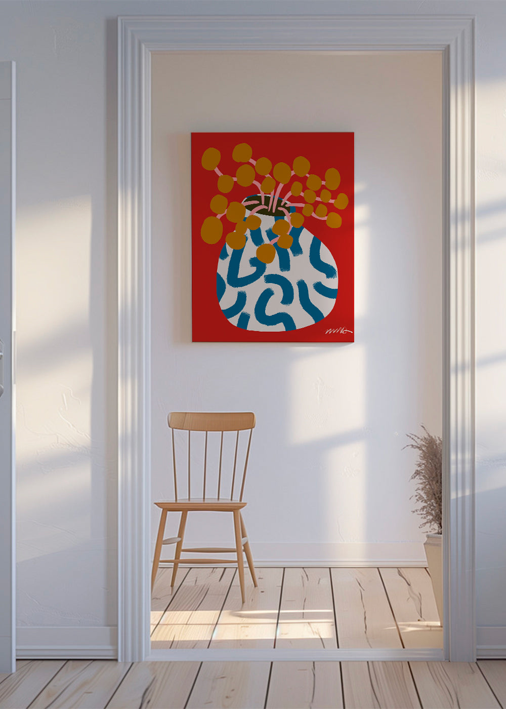 Una stampa della nostra collezione di illustrazioni per quadri e stampe, di Vaanzaal, dalle sfumature rossi, e orientata in senso verticale. Le illustrazioni sono una delle forme d'arte più chiare, e questo è un design che non passerà inosservato. Una parete spoglia è come una tela bianca da dipingere.