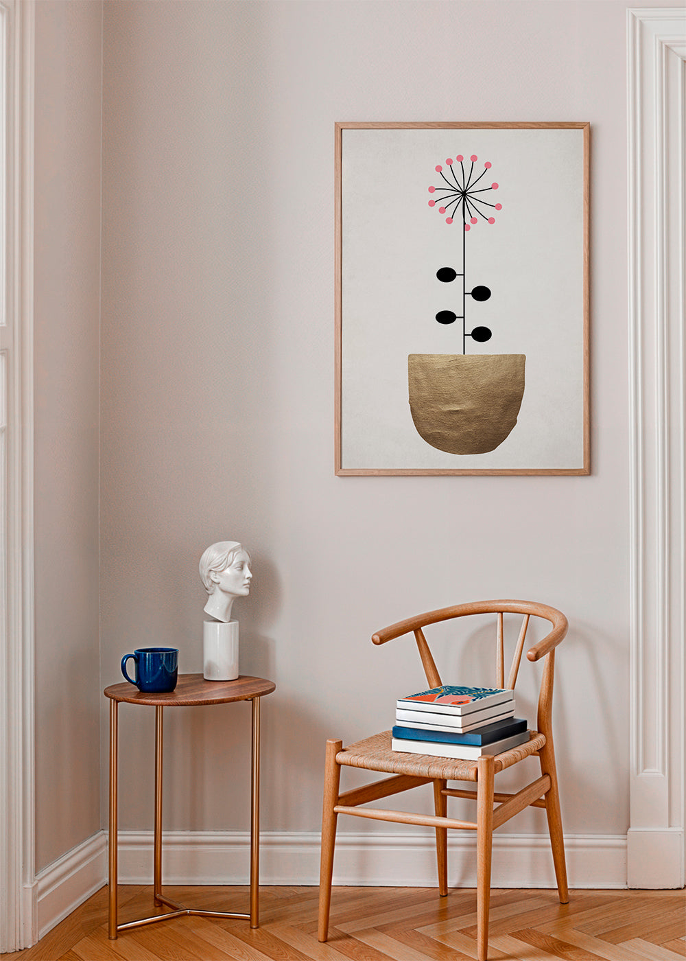 Per appendere le nostre cornici, devi separare leggermente il gancio in metallo nero o argento dal retro. Una volta separato, puoi appenderlo al gancio che hai scelto in base al materiale della tua parete.