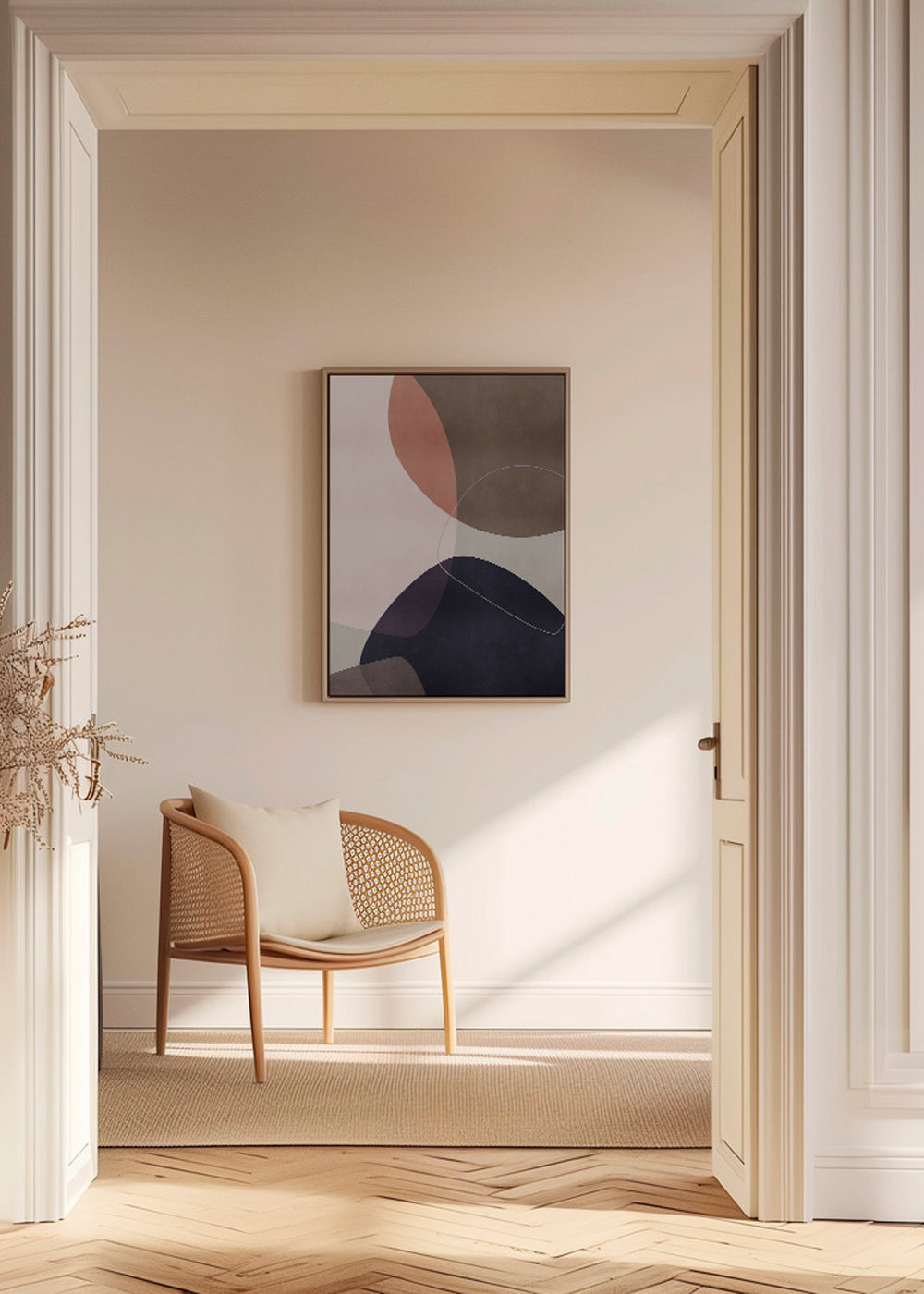 Una immagine della collezione quadri geometrici, dell'artista Mareike Böhmer, dalle sfumature rose, e con disposizione verticale. I quadri geometrici sono un'ottima opzione per decorare spazi moderni e all'avanguardia. Crea un angolo unico.