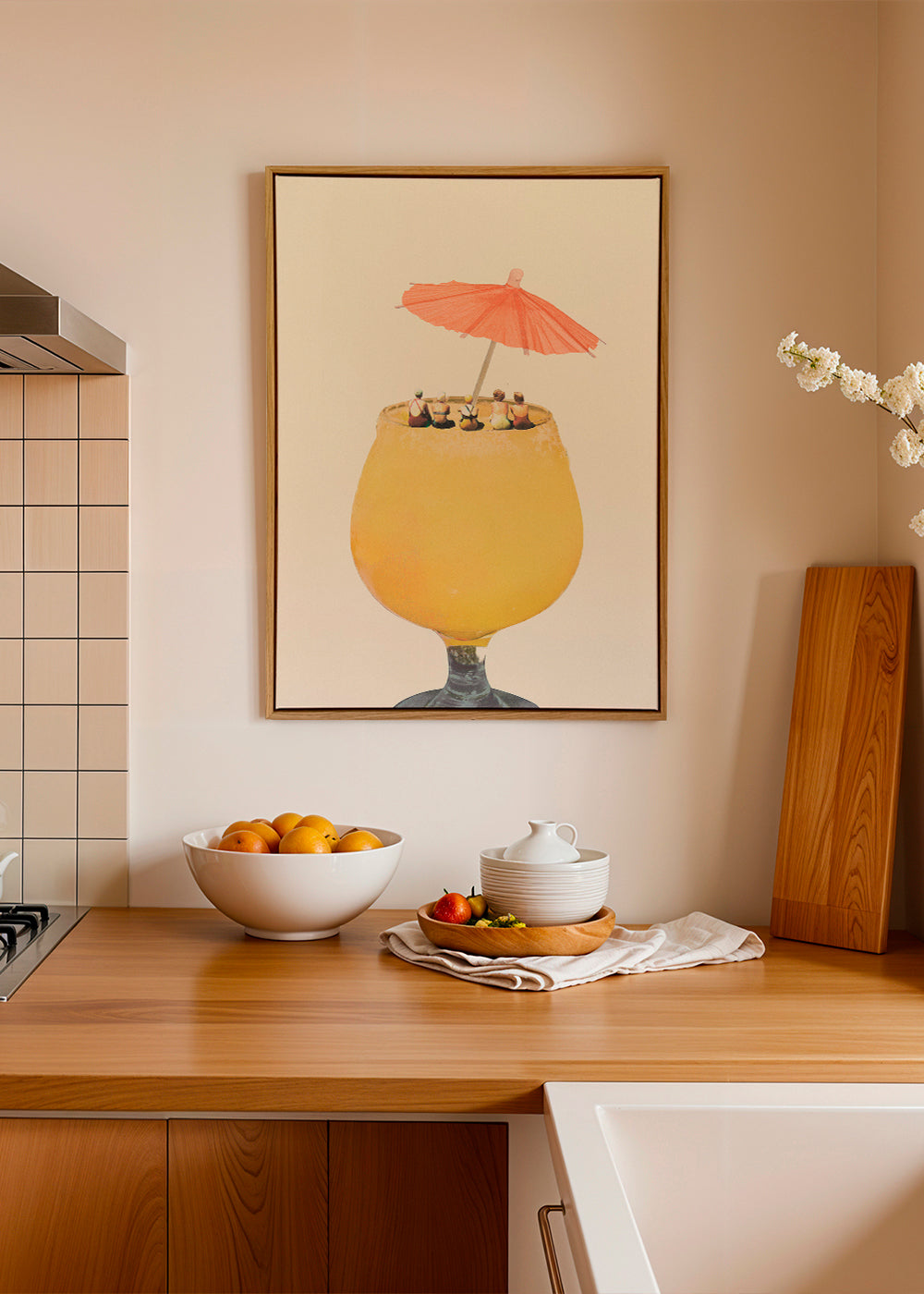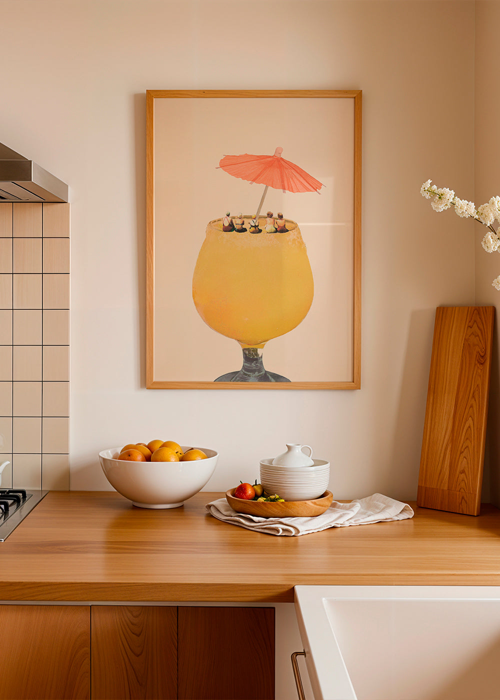 Una opera dal nostro set di quadri vintage e stampe retrò , dell'artista Maarten Leon, con colori gialli, e con orientamento verticale. I quadri vintage donano un tocco incredibilmente chic a qualsiasi stanza. Crea un angolo unico.