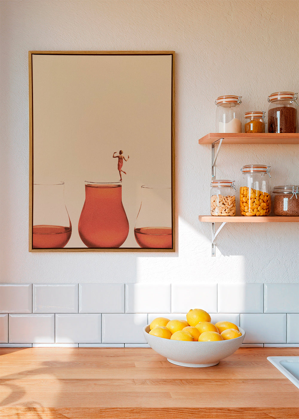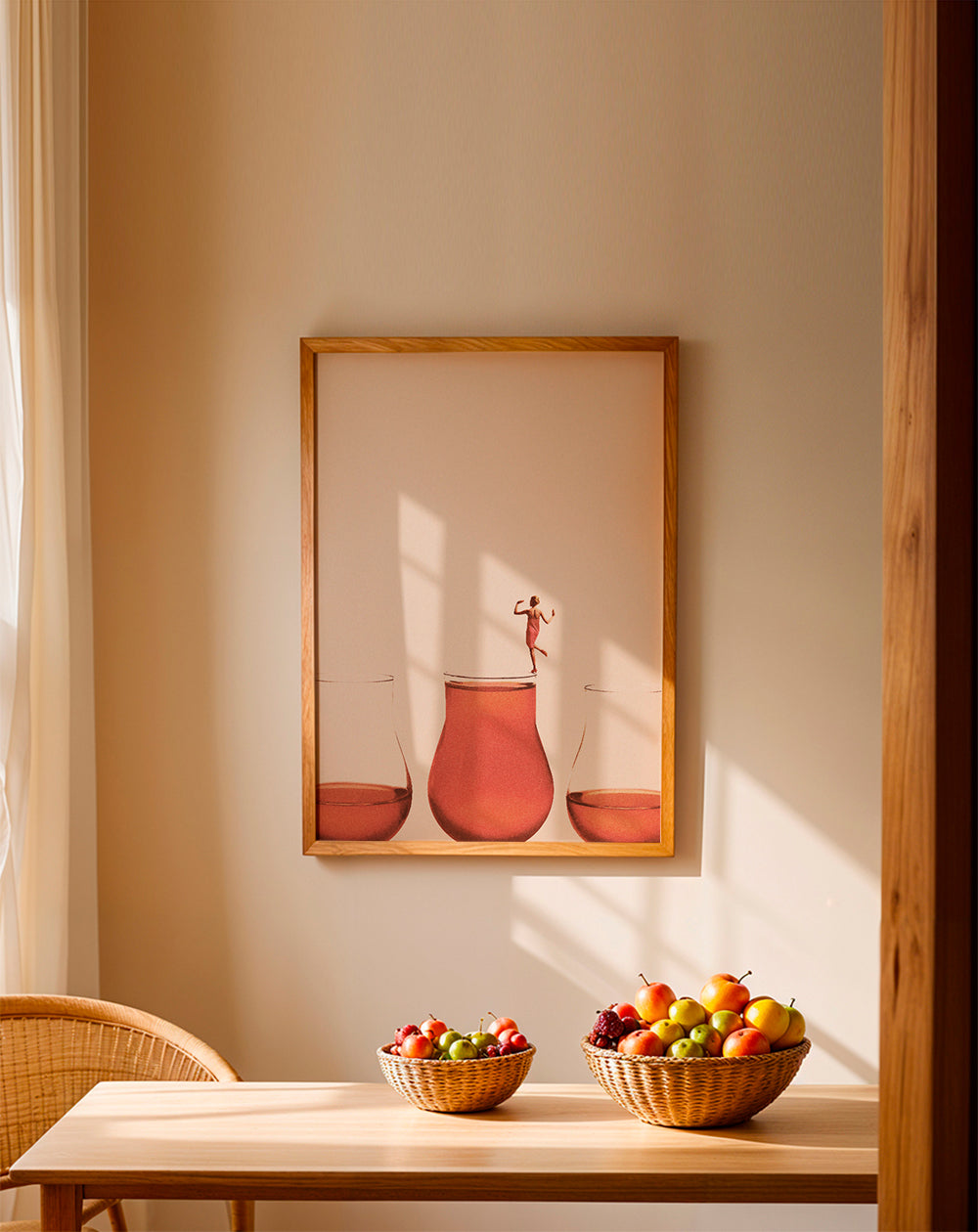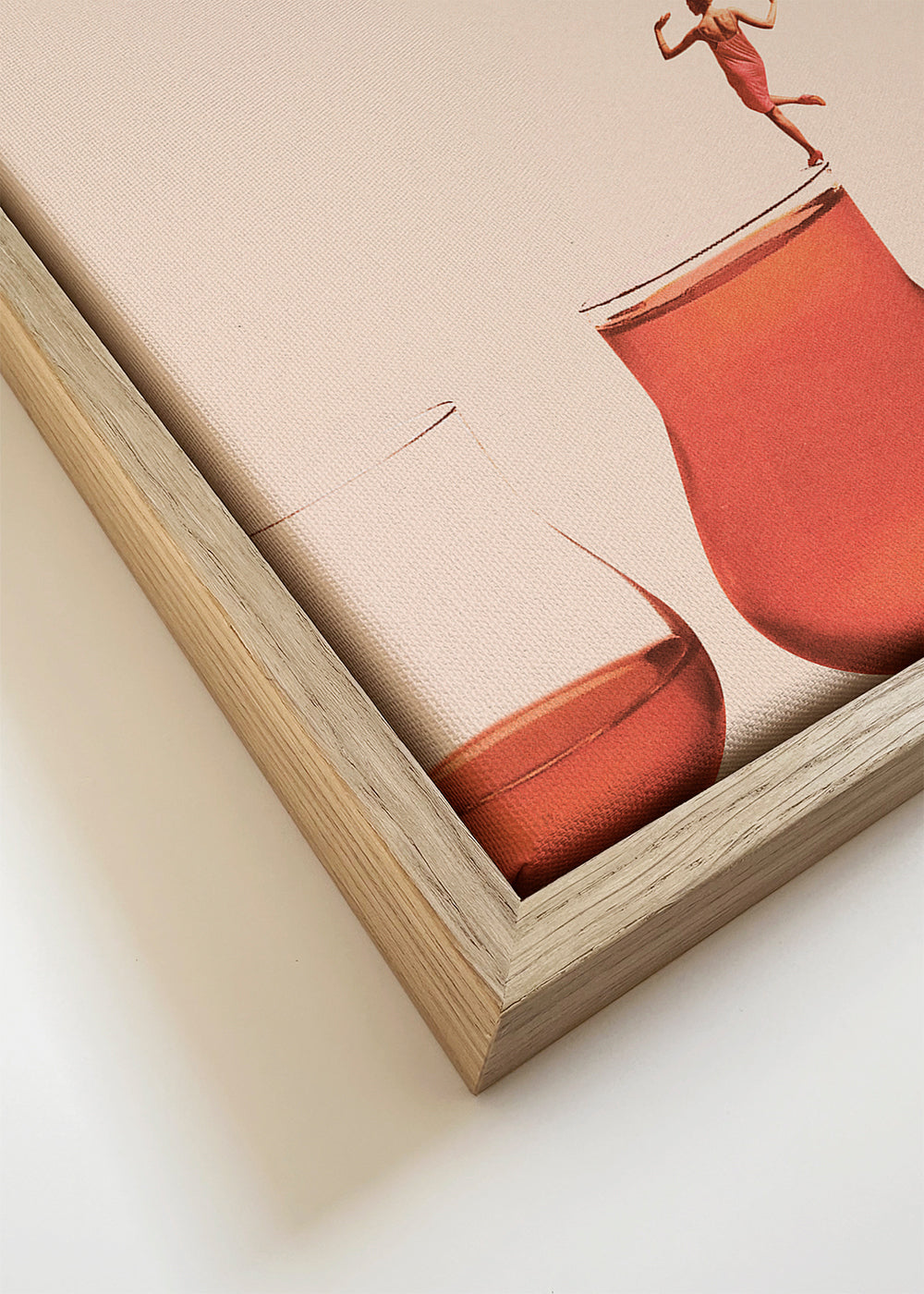 Per evitare rotture, le nostre cornici incorporano vetro acrilico al posto del vetro. Il vetro acrilico riproduce l'effetto del vetro, ma evita possibili danni durante il trasporto o il posizionamento della cornice.
