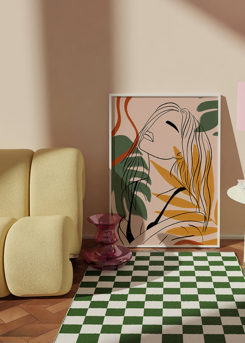 Questo quadro dal nostro set di quadri con linee, realizzata da Essentially Nomadic, con pigmenti verdi, e orientata in senso verticale. Si tratta di un'illustrazione semplice e pulita, che puoi abbinare ad altre illustrazioni per realizzare una composizione artistica. Combina le nostre opere in vario modo per ottenere lo stile che cerchi.